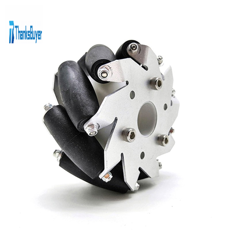 We offer one piece of 100mm (4 inch) Mecanum wheel which is comprised of 9 rollers. The wheel is driven independently. Mecanum wheel can move in any direction, without changing the directions the wheel spin.