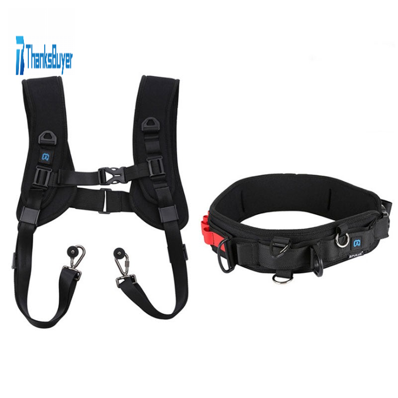 2-In-1 Camera Waist Belt + Double Shoulder Camera Strap Kits with Hook for SLR/DSLR Cameras PKT3060