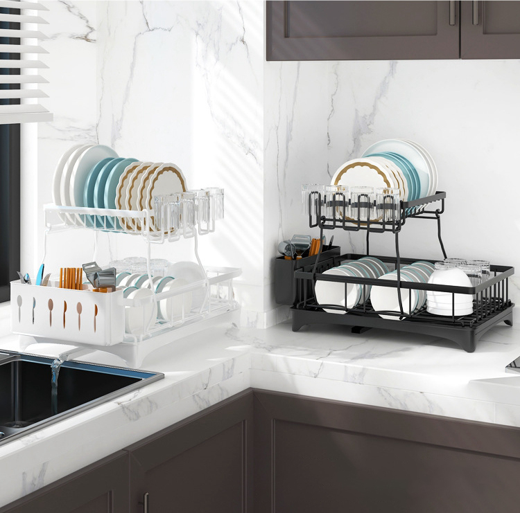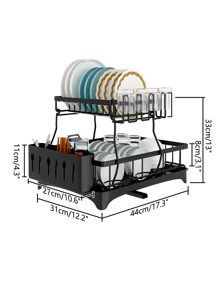 - Large Capacity: With a 2-tier detachable design, it provides super large space for storing tableware such as plates, dishes (10pcs), mugs, chopsticks, forks, and and bowls (20pcs). With a utensil holder and a cup rack to hold 4 cups, the dish drainer can meet your various needs
