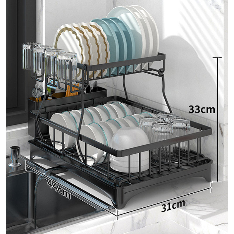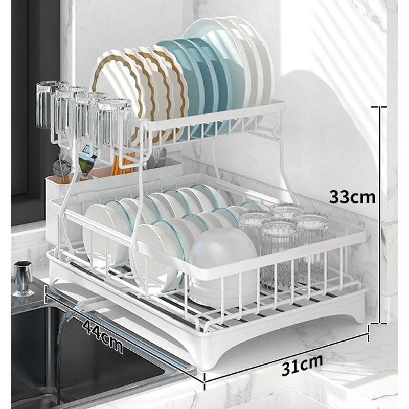 2-Tier Dish Drying Rack Stainless Steel Dish Drainer Detachable Organizer w/ Utensil Holder Cup Rack