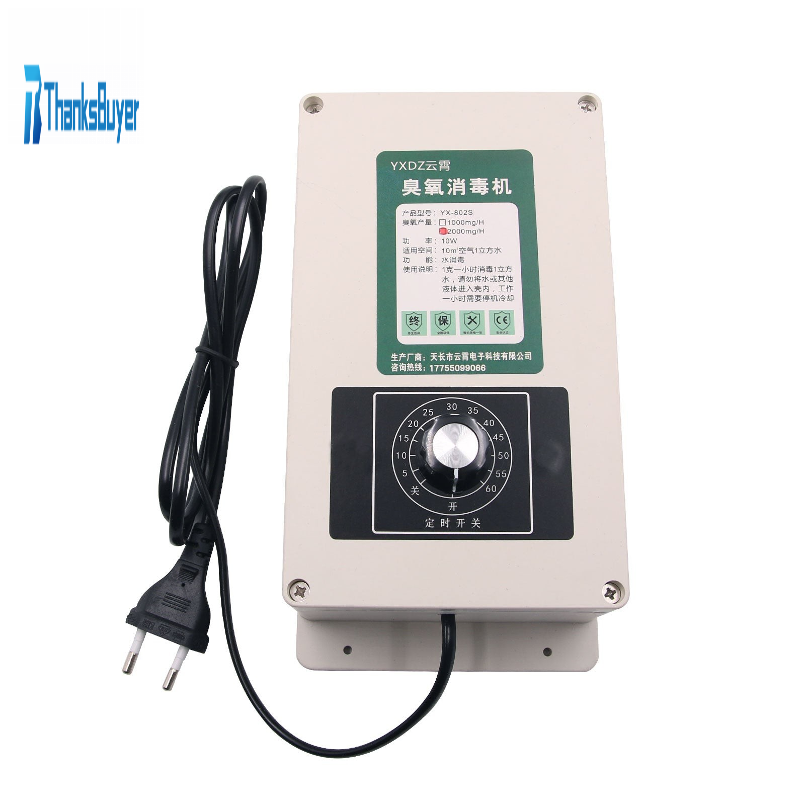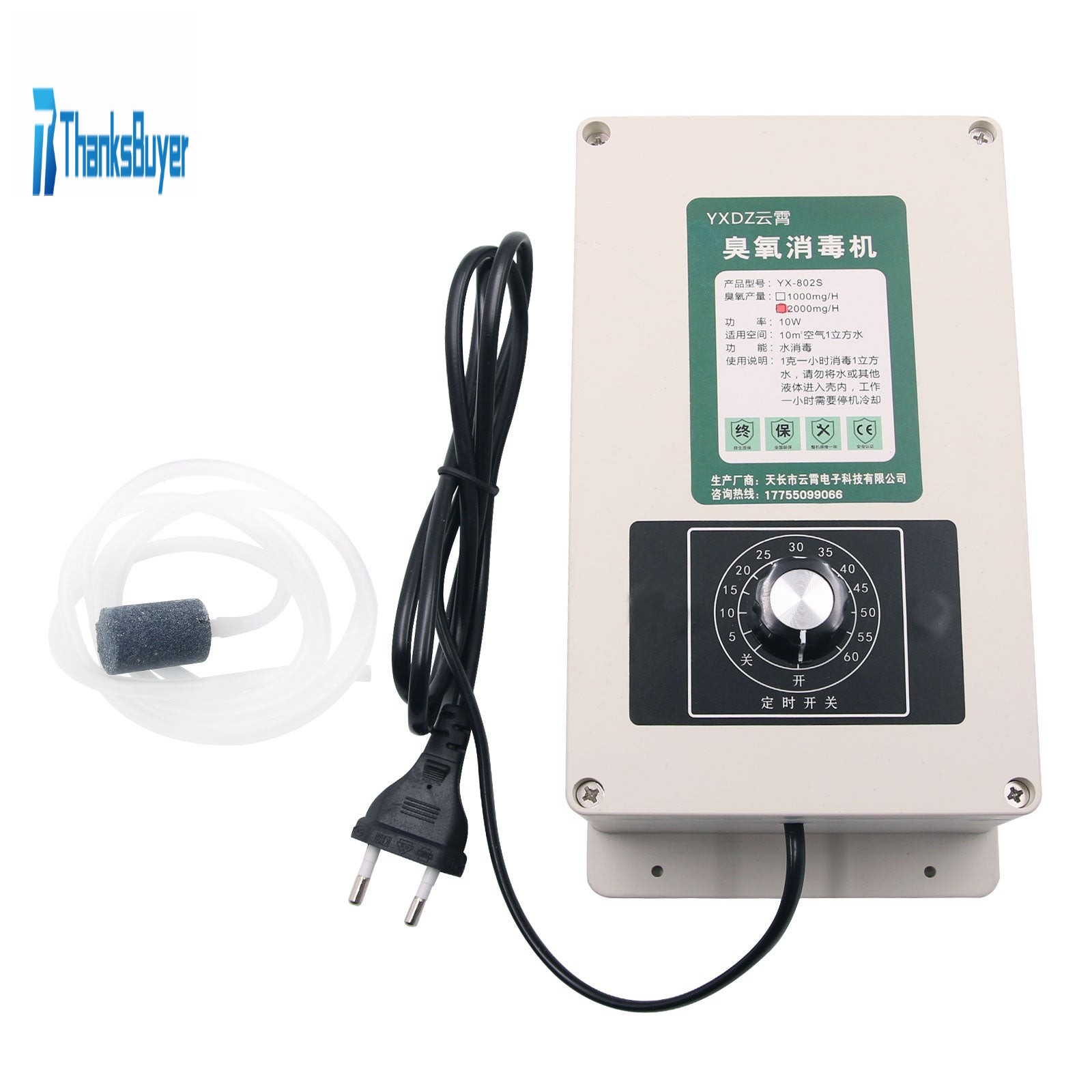 2000mg/h Ozone Generator Water Purifier Water Ozonizer w/ Timer For Fish Tank Fruit Vegetable 220V