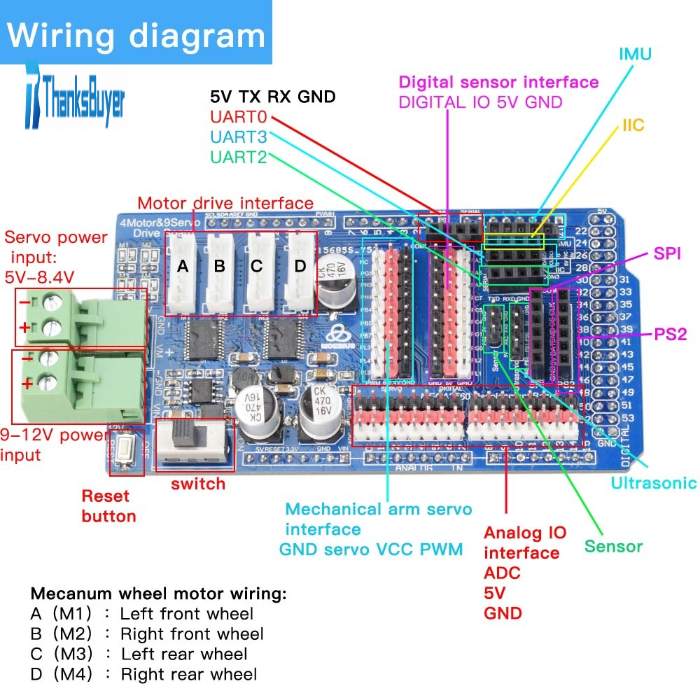 - Can drive the 2/3/4wd smart robot car, Mecanum wheel robot and robot arm