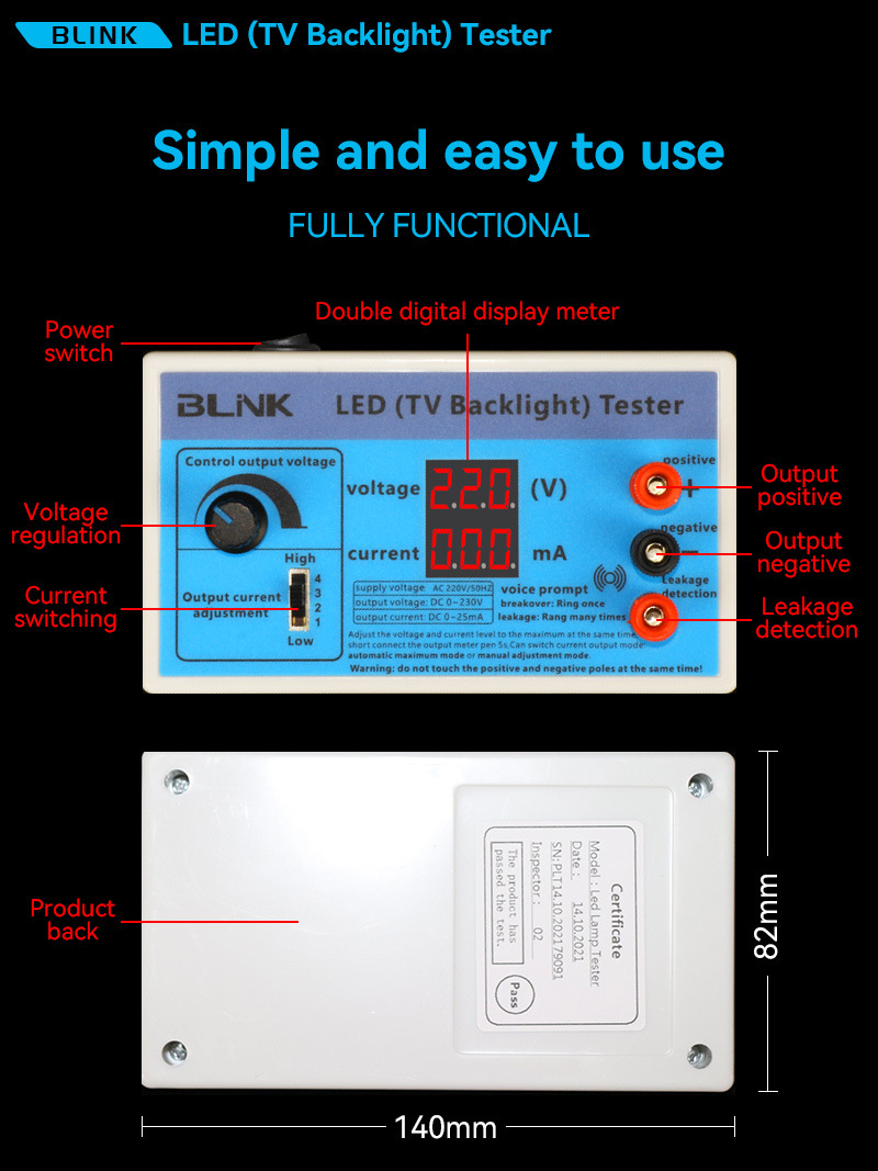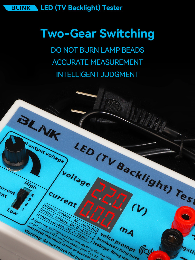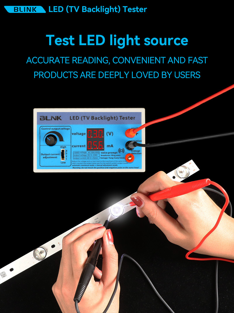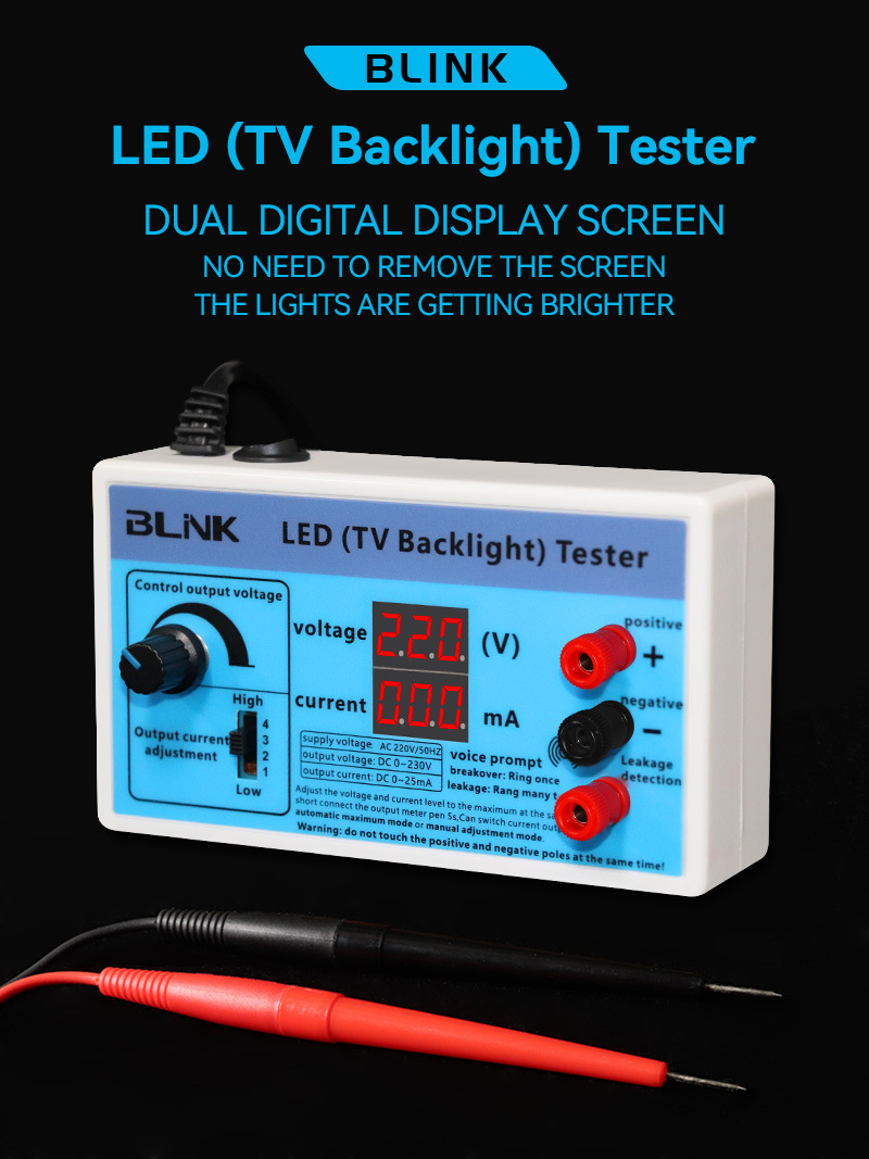 - This LED TV backlight tester can find the defective LED on the light bar within a few seconds through automatic voltage and current adjustment.
