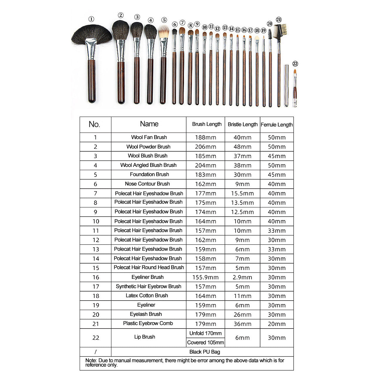 - Item Name: 22pcs makeup brushes