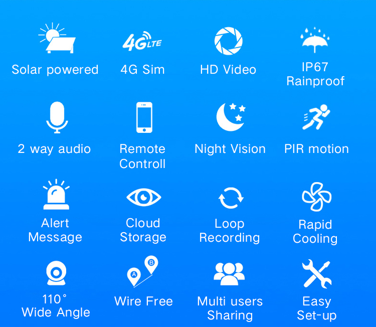 - WiFi-PLUS Version: with 7W solar panel. Support WiFi, but without 4G functions.