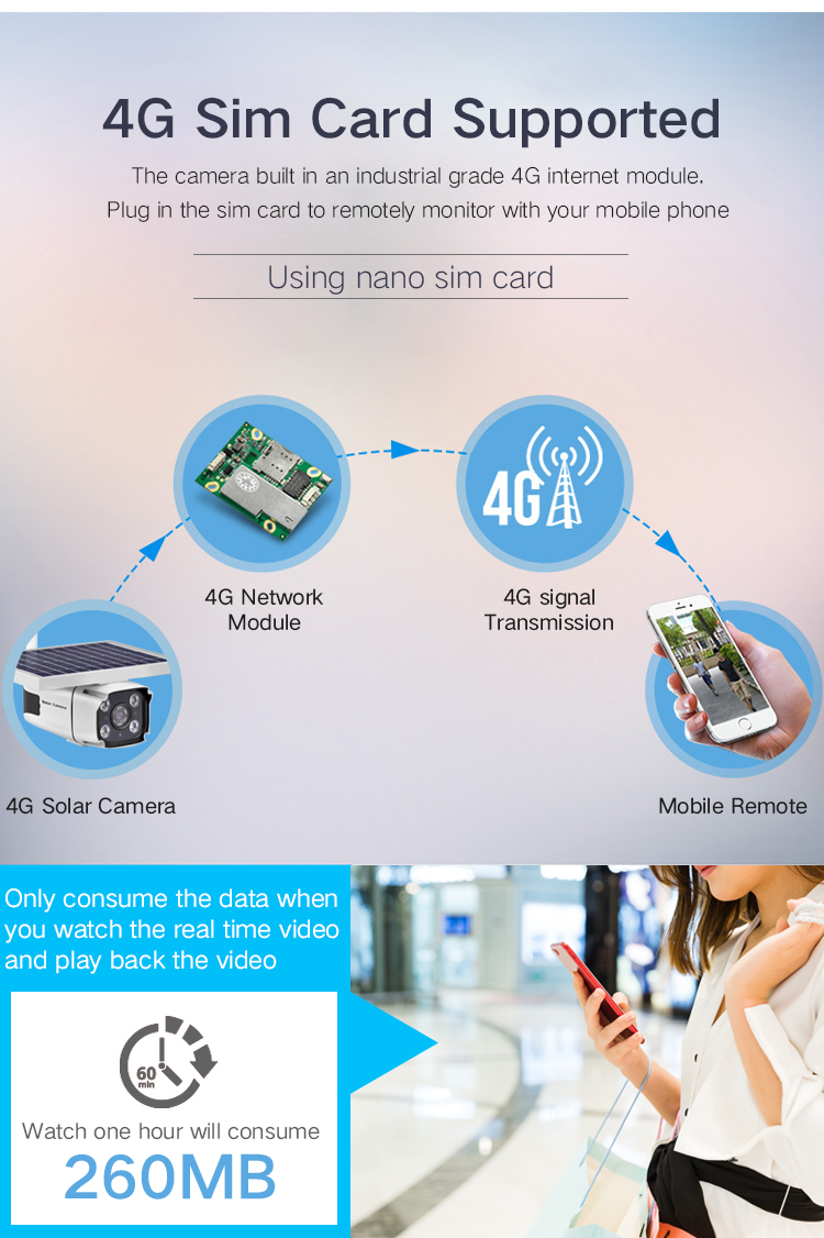 - WiFi Version: with 3W solar panel. Support WiFi, but without 4G functions.