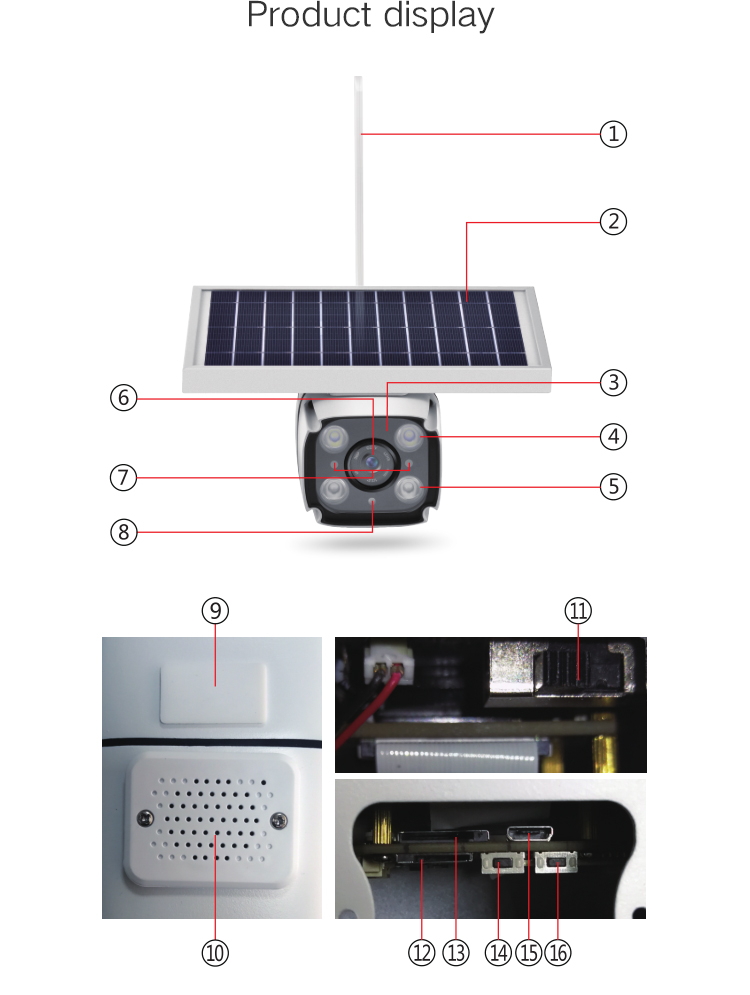 - Power supply: photoelectric dual purpose, solar + built-in lithium battery power supply