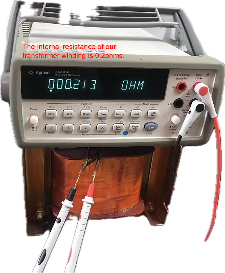 Its internal resistance is lower than that of a toroidal transformer (the internal resistance of a 3000W toroidal transformer on the market is 0.3-0.8 ohms). Its internal resistance is only 0.2 ohms!