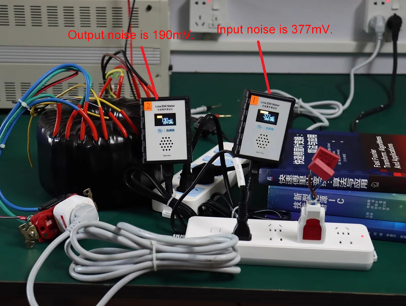 Toroidal transformers have poor anti-interference ability. Its input noise is 375mV, and the output is 190mV. However, the British transformer has an input noise of 375mV and an output of about 50mV.