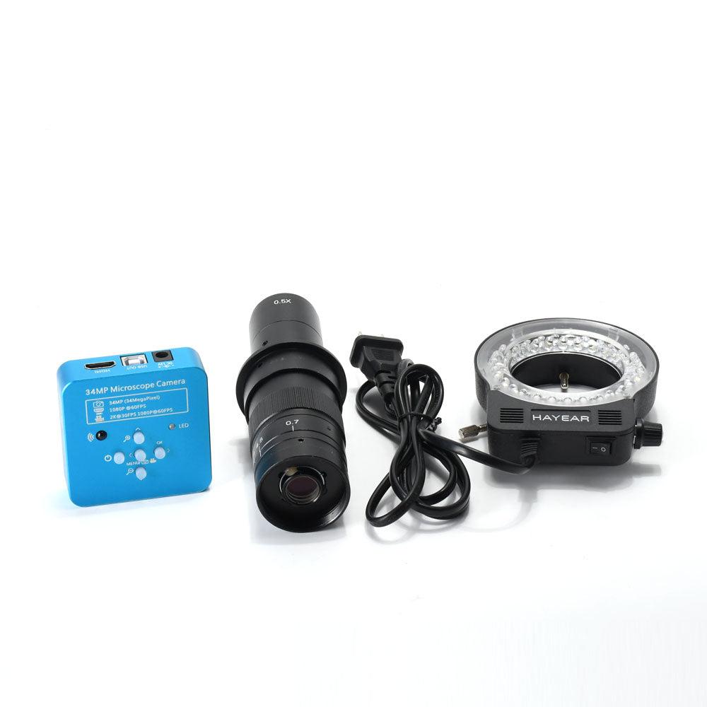 34MP USB Industrial Microscope Camera Stand Kit 2K 1080P w/ 180X C-Mount Lens 56-LED Ring Light