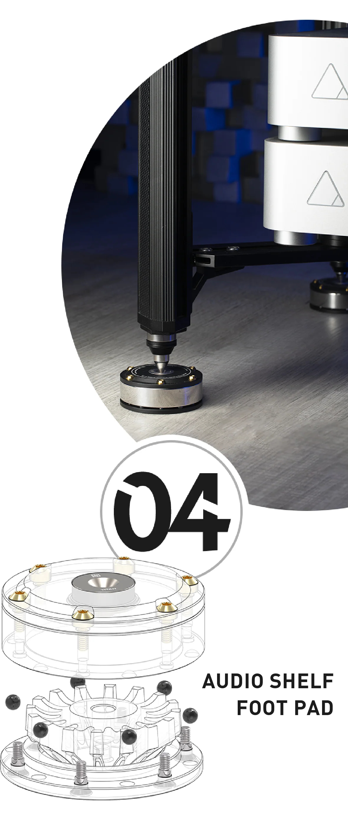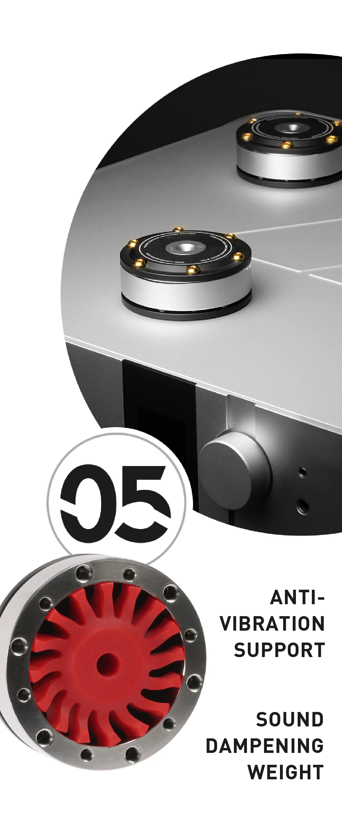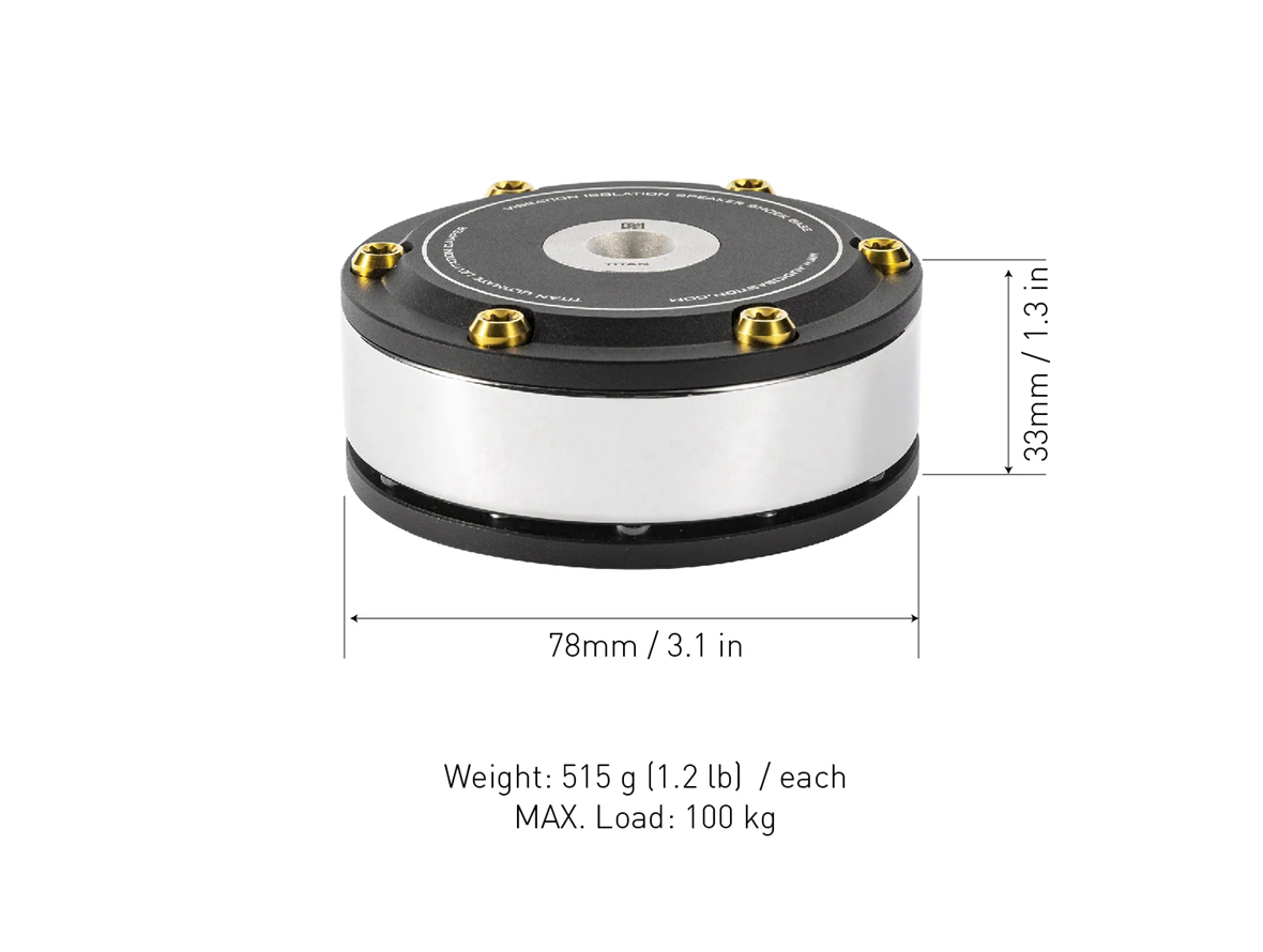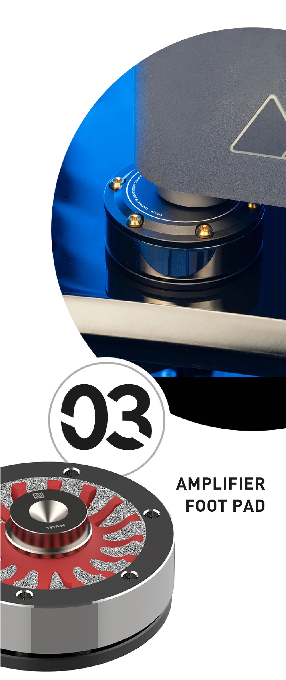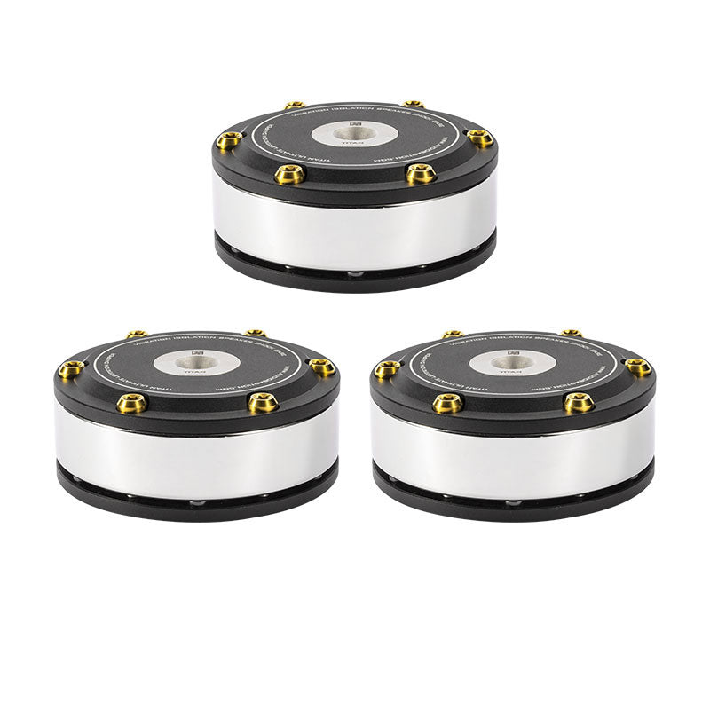 Made from polished Stainless Steel, Titanium Alloy GR5, T6061 Aluminum, and Silicone Cushion to accurate tolerances. TITAN is designed to look great while also significantly reducing vibration in all hi-fi equipment. You will notice an immediate improvement to the sound quality with wider soundstages, clear high notes, more details, and solidity. On AV equipment a clearer crisper picture will be seen as well.