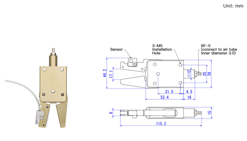45N Mini Robot Gripper With Sensor Two-Fingered End Of Arm Tooling Replacement For Star EINS CHK-EL-12-C