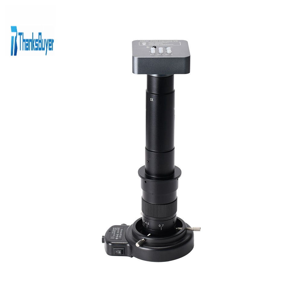 48MP FHD Camera V8 Industrial Video Microscope Camera w/ 300X Lens 144-LED Ring Light For PCB Repair