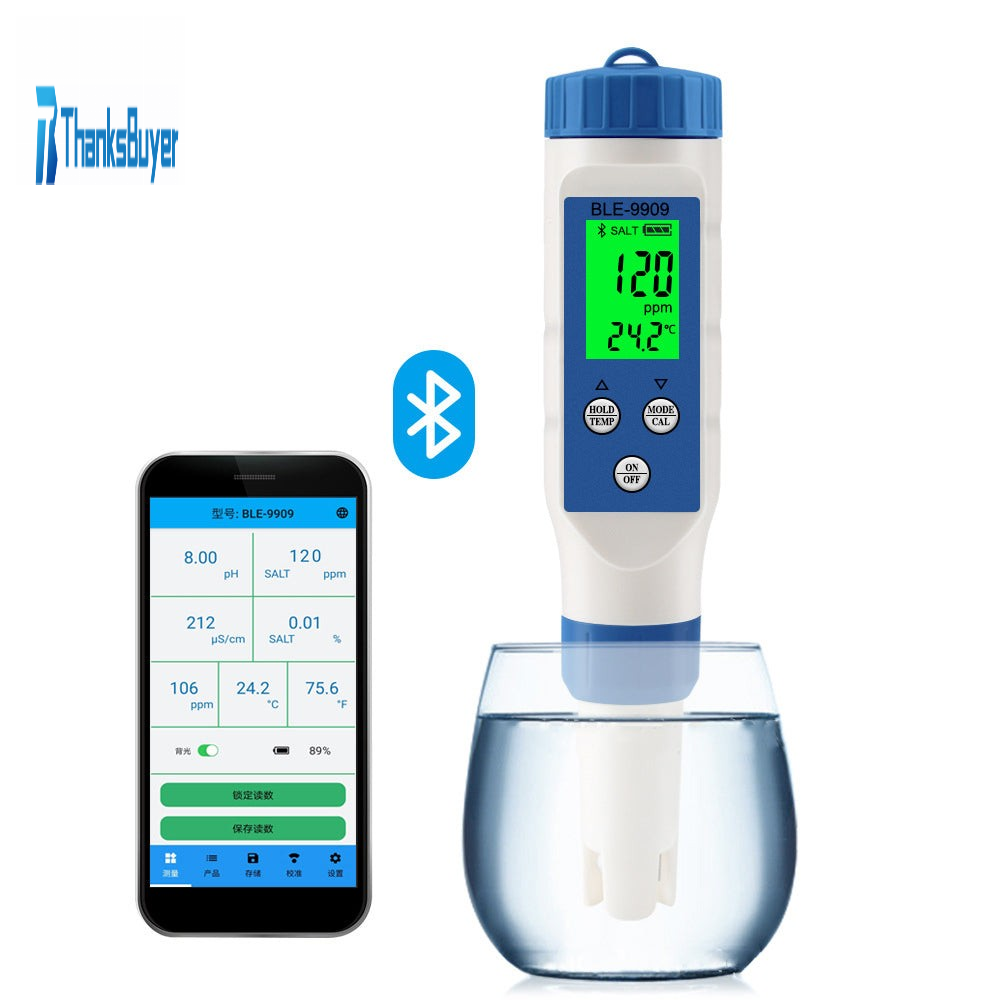 5-In-1 Bluetooth Water Quality Meter Water Quality Tester BLE-9909 to Measure PH/TDS/EC/SALT/TEMP