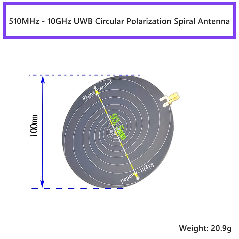 510MHz - 10GHz Circular Polarization UWB Antenna High Gain Equiangular Spiral Antenna with SMA Female Connector