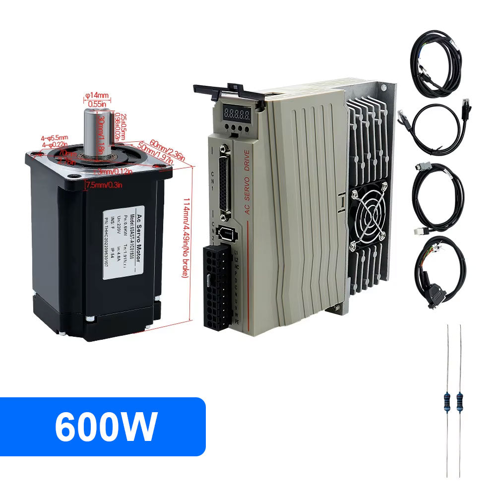 60AST-A1C01930 (without Brake) 600W 1.9NM AC Servo Motor Kit with AC Servo Drive for CNC Engravers