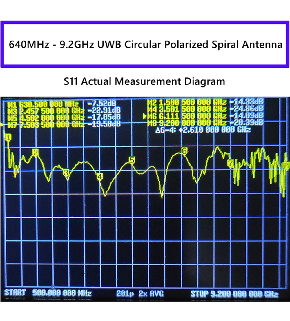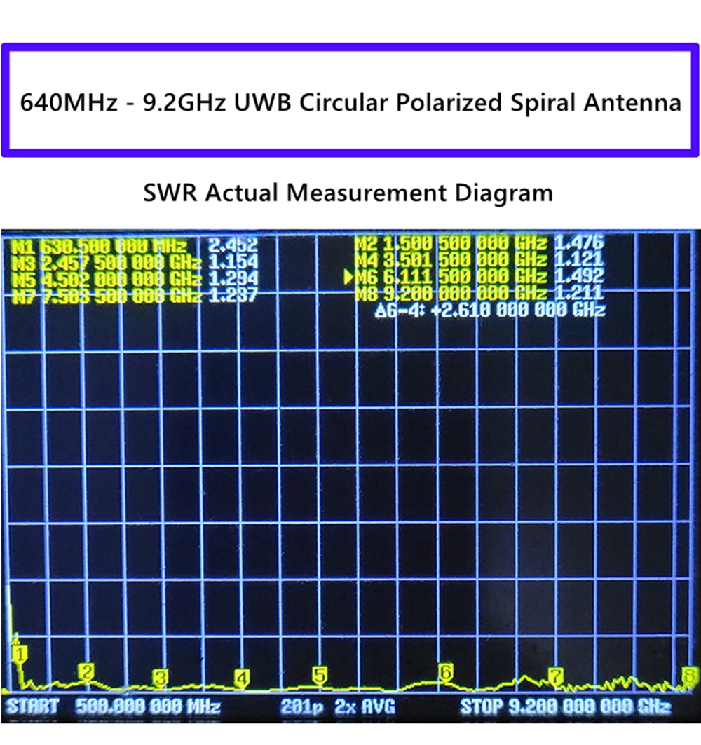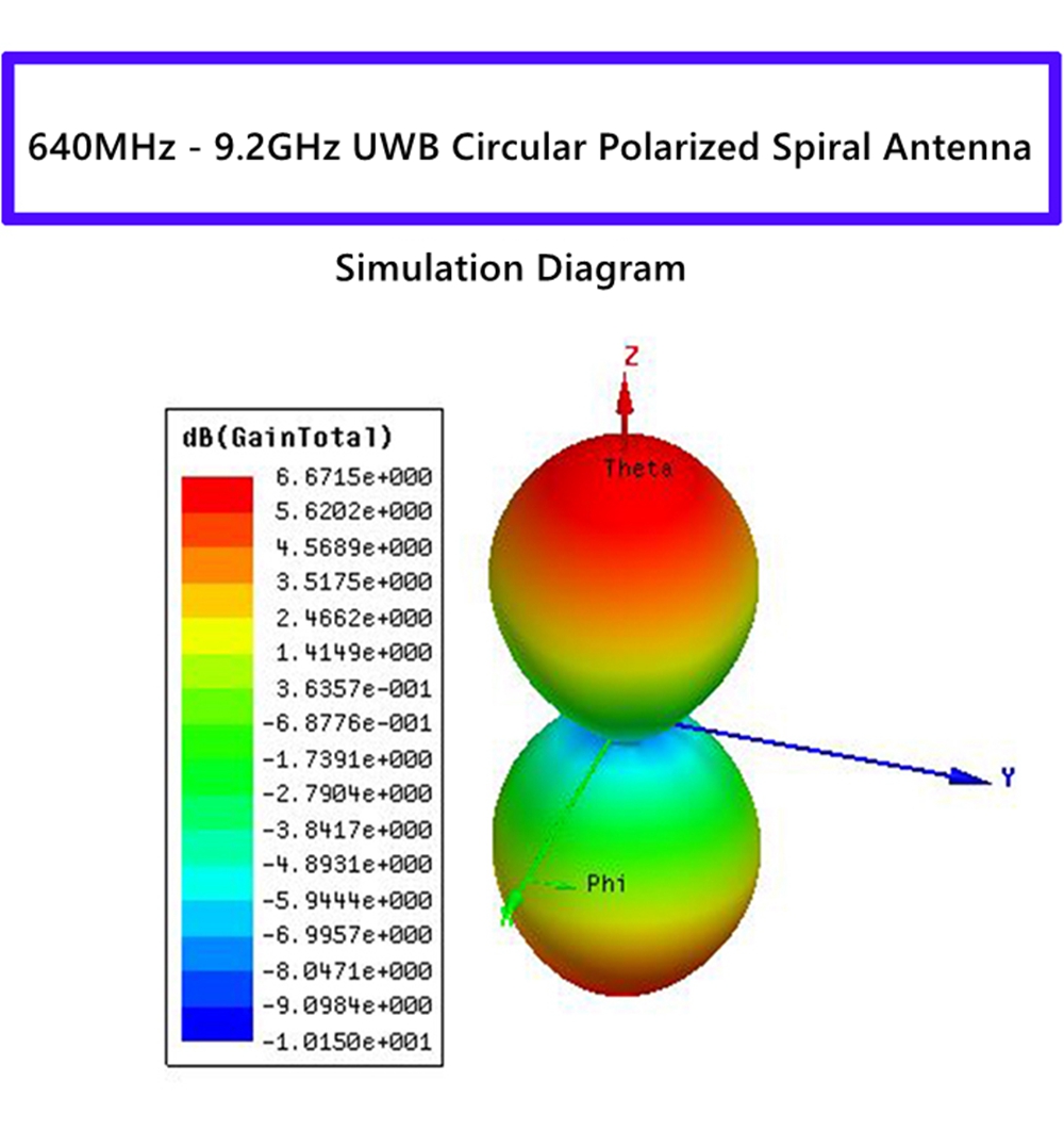 - It can be used for direction finding, spectrum analysis, signal analysis, navigation positioning, broadband measurement, direction finding, etc., providing 4 - 7dBi circularly polarized directional gain in the frequency range of 700MHz - 9.2GHz.