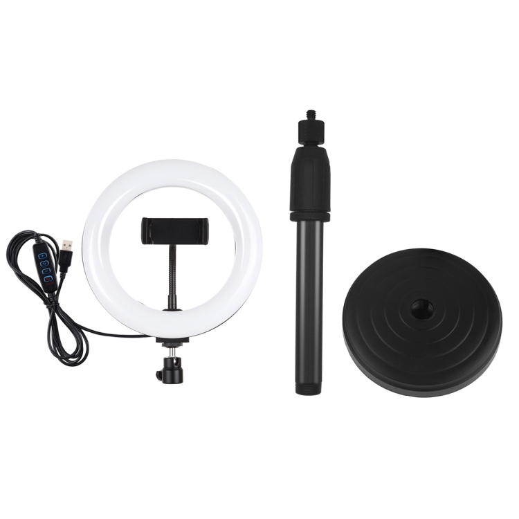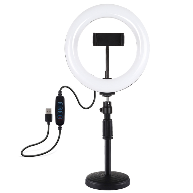7.9" Desktop Dimmable LED Ring Light with Stand Round Base Phone Clip Vlogging Selfie Light PKT3078B