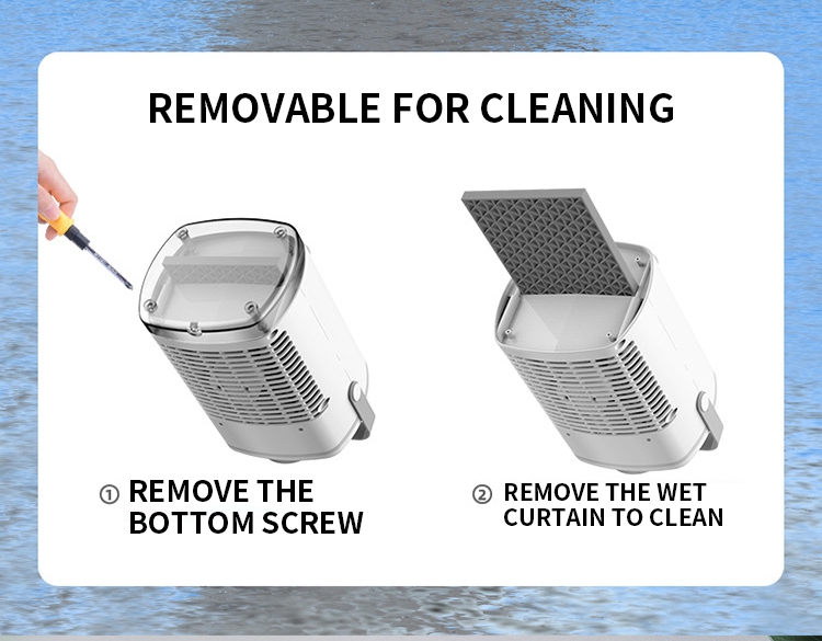 - 700ML upper water tank enables continuous refrigeration for 4-5 hours. Bottom condensate water tank, repeated suction and refrigeration by the wet curtain, no waste of water