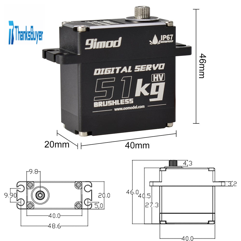 9imod 51KG 360° Digital Servo Waterproof Brushless Servo Metal Gear BLS-HV51MG for RC Car Boat Robot