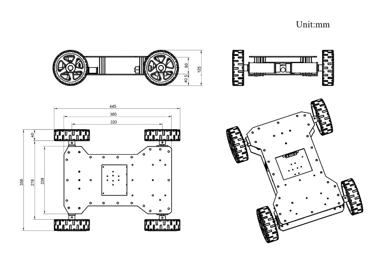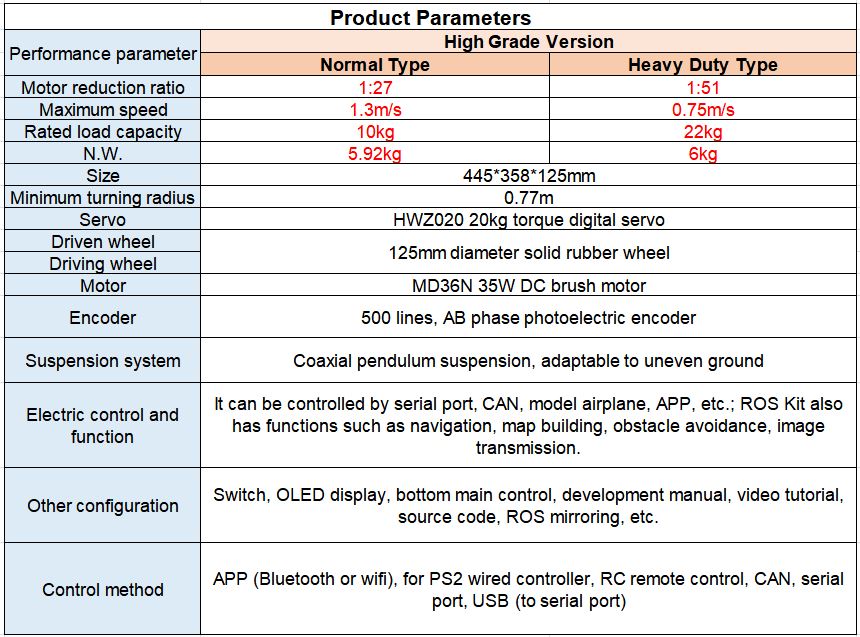 - The car's ROS main control, radar model, camera model, speed, load, size, hole position, structure, and motor reduction ratio are all customizable. Please contact customer service if it is needed.