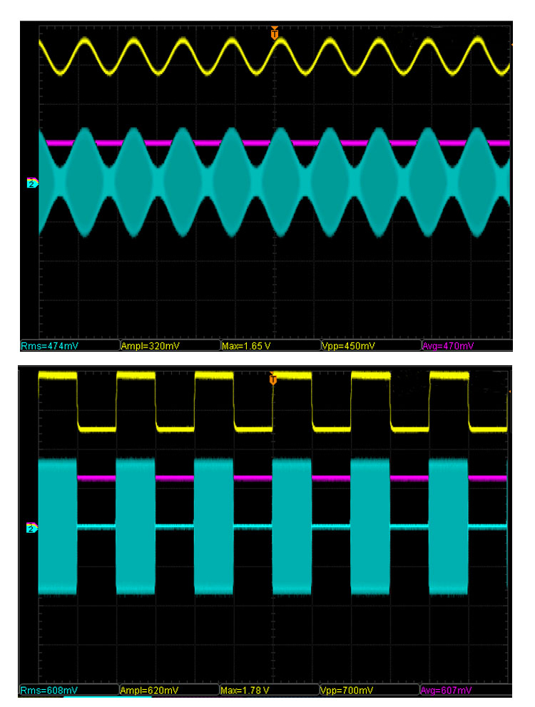 - Blue is the modulation signal input