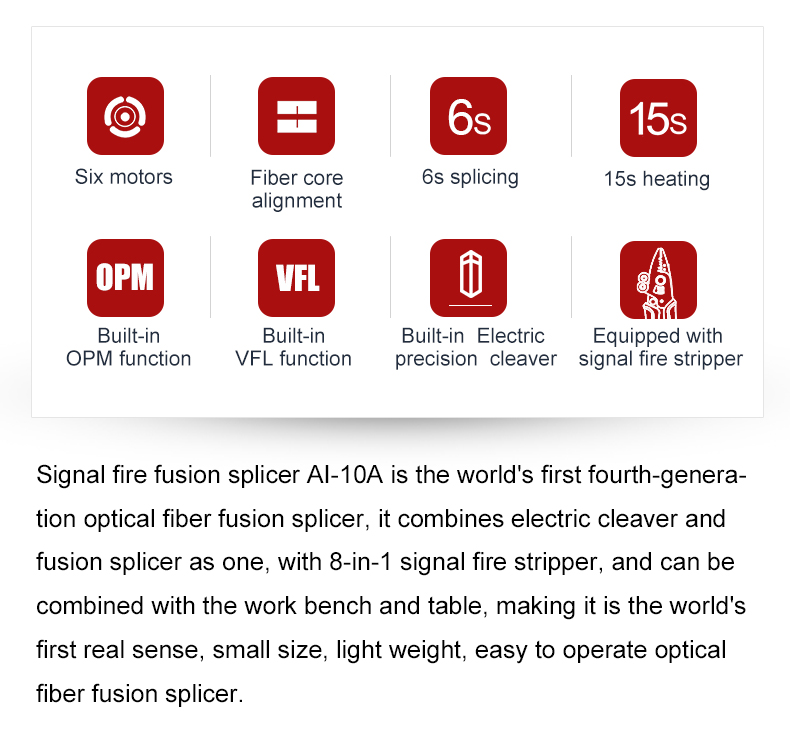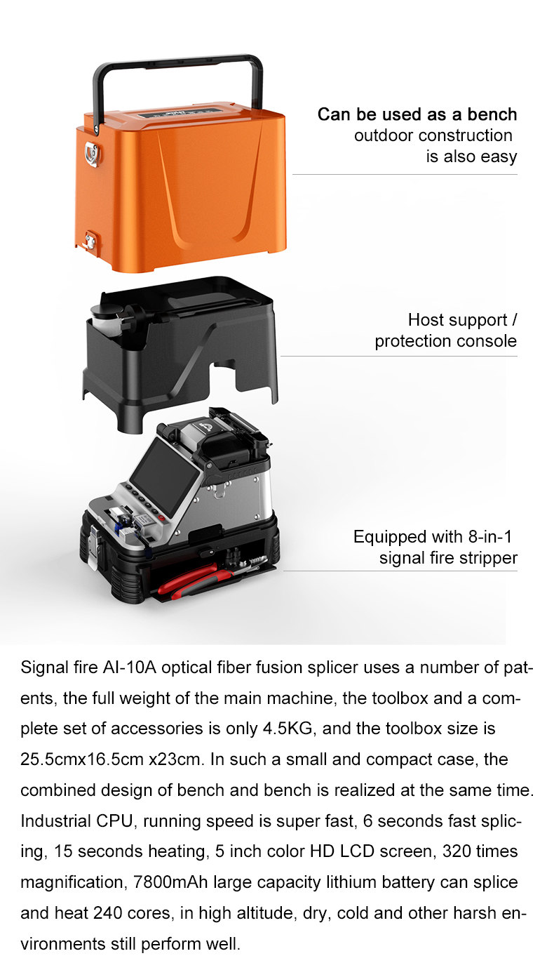 AI-10A Fourth Generation Trunk Line Optical Fiber Fusion Splicer with 5-inch TFT Screen and 8-in-1 Signal Fire Stripper