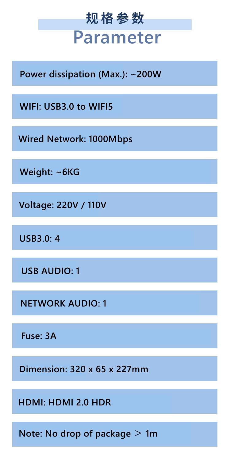 - 4 x USB 3.0, 1000M network port, USB TO AC WIFI support