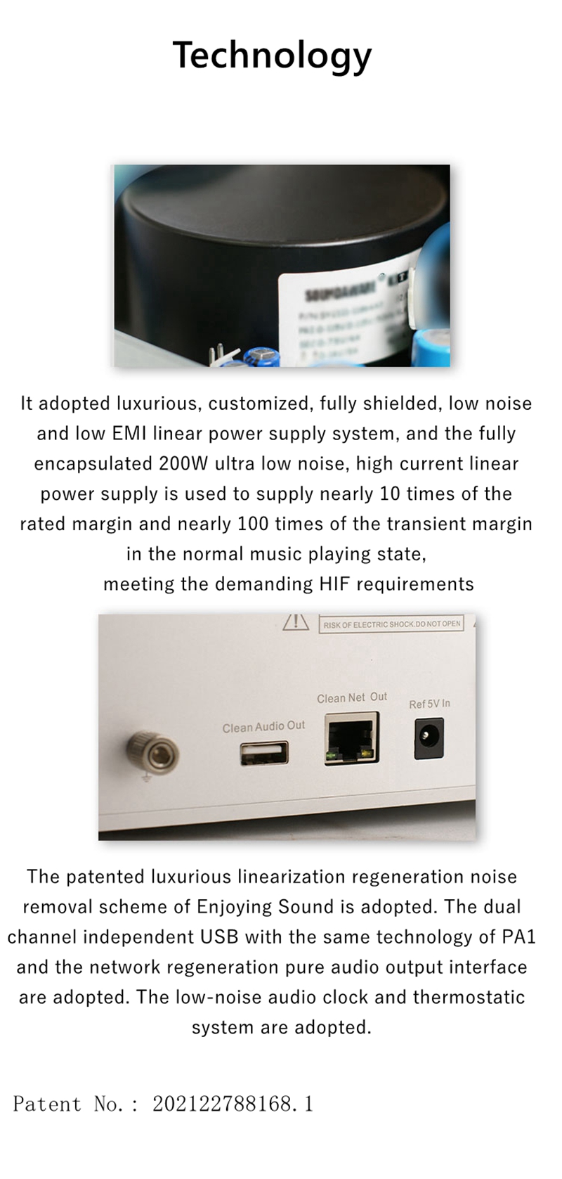 - Built-in two independent PA1 patented noise removal systems, independently output clean USB and network audio signals