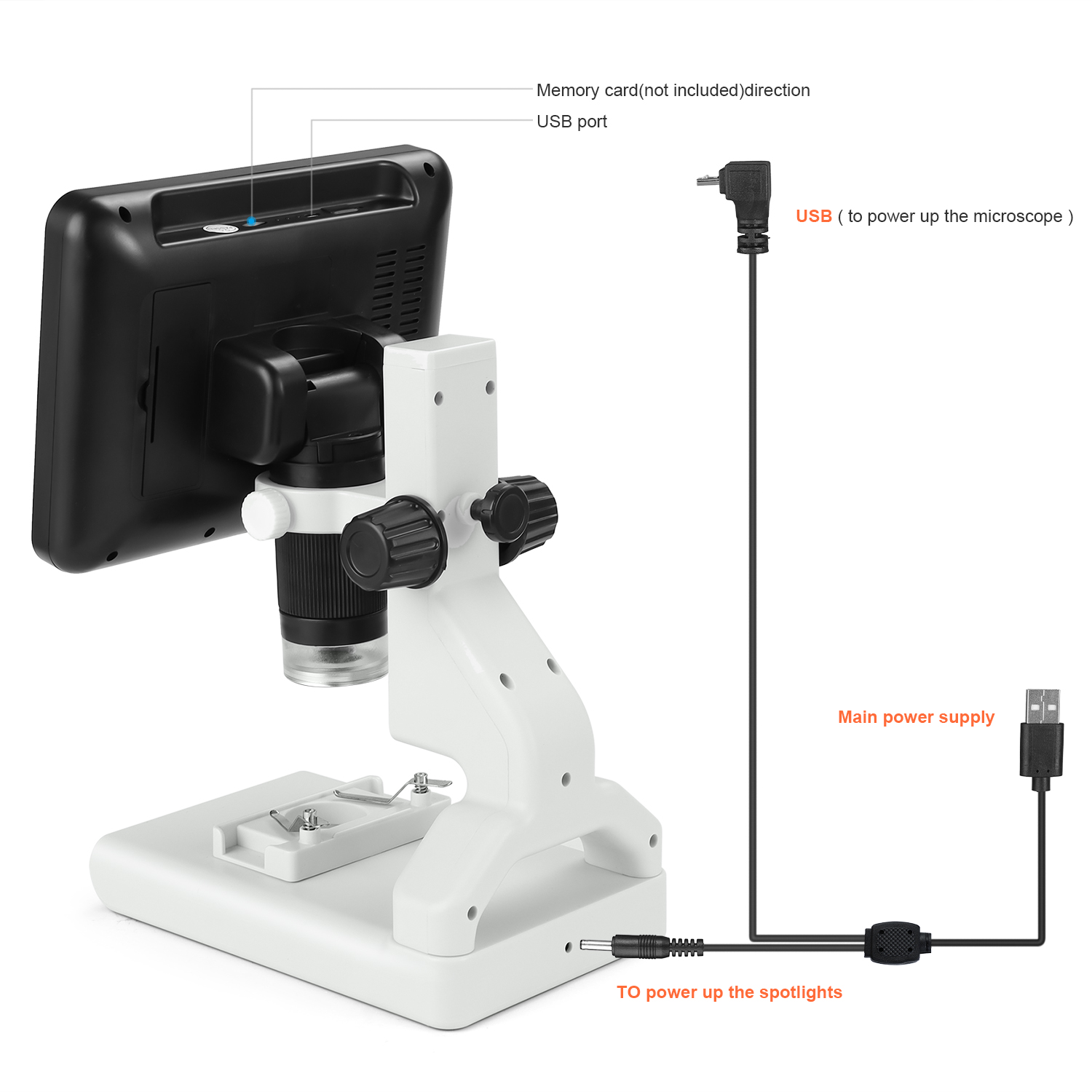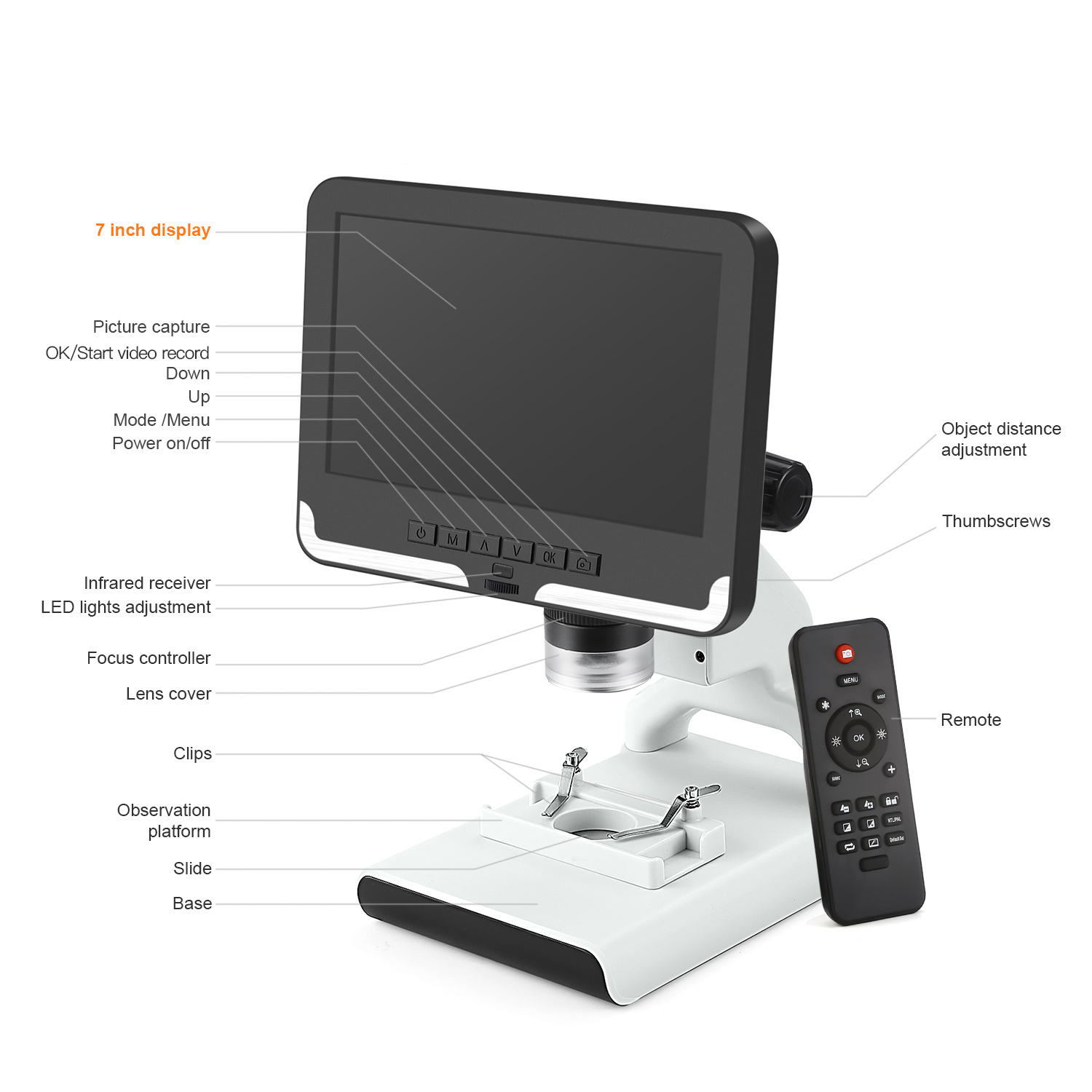 ANDONSTAR AD108 200X Digital Microscope 2MP Electronic Magnifier 7" LCD Plastic Stand Black Monitor