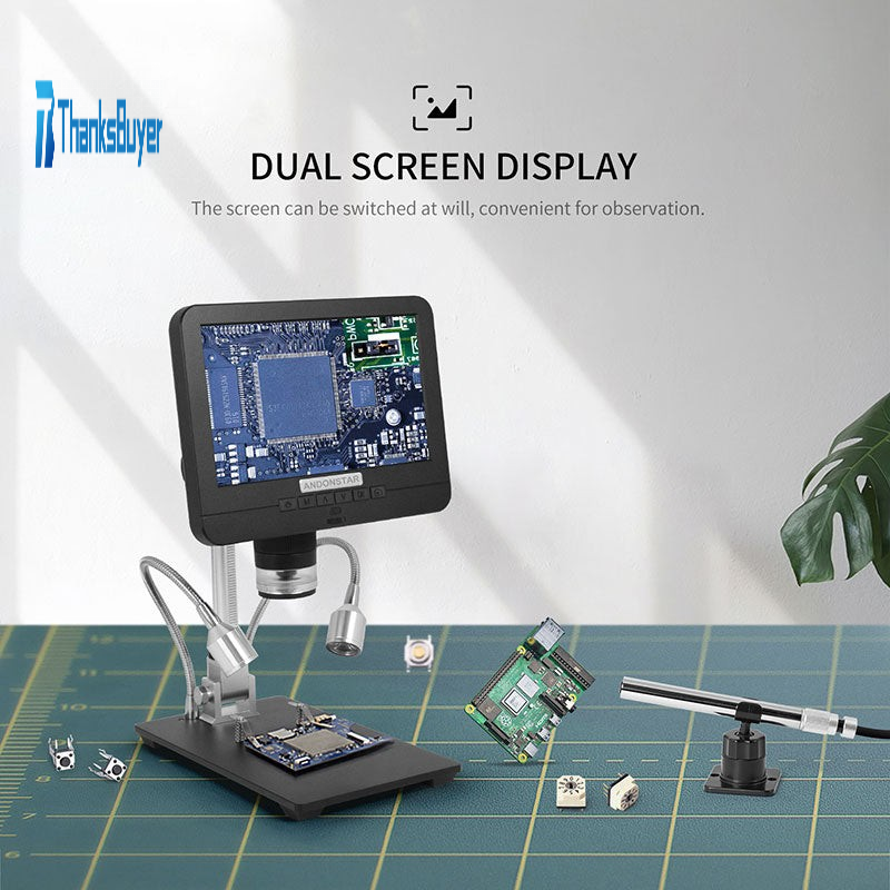 Andonstar AD206S 50X 2MP Industrial Digital Microscope USB Endoscope Dual-Lens Display 7" Screen