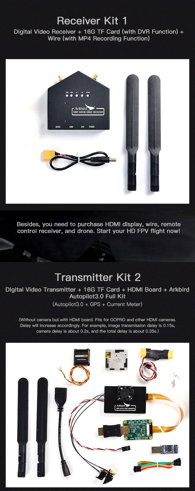 Arkbird Wireless Video Transmitter Receiver FPV DVR Kit with Autopilot3.0 (HDMI Board Version)