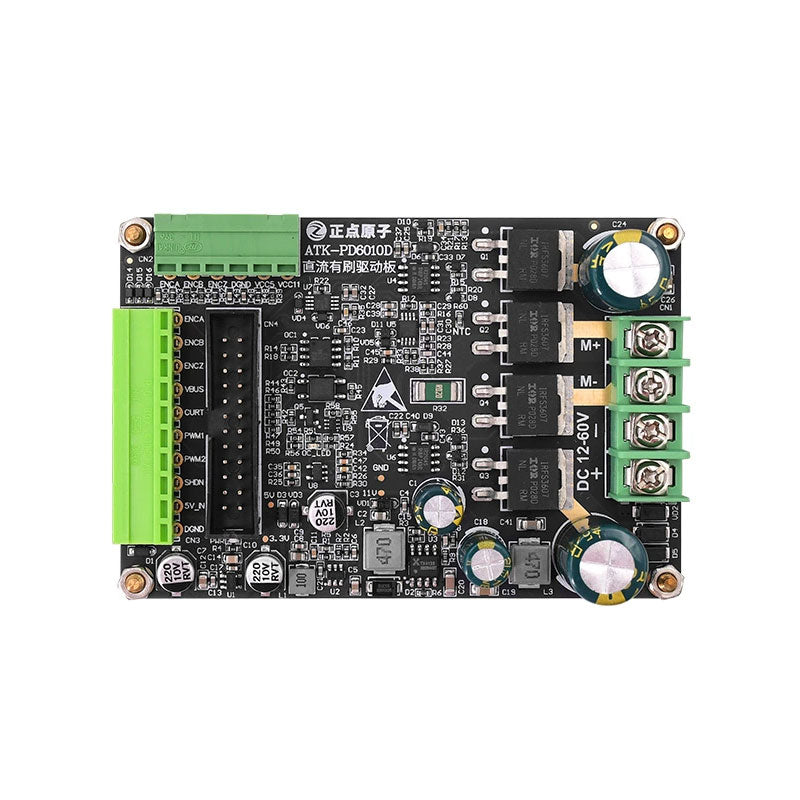 - ATK-PD6010D brushed DC motor driver board, supporting a wide range of DC12 ~ 60V power supply, with a maximum output current of 10A and a maximum output power of 600W.