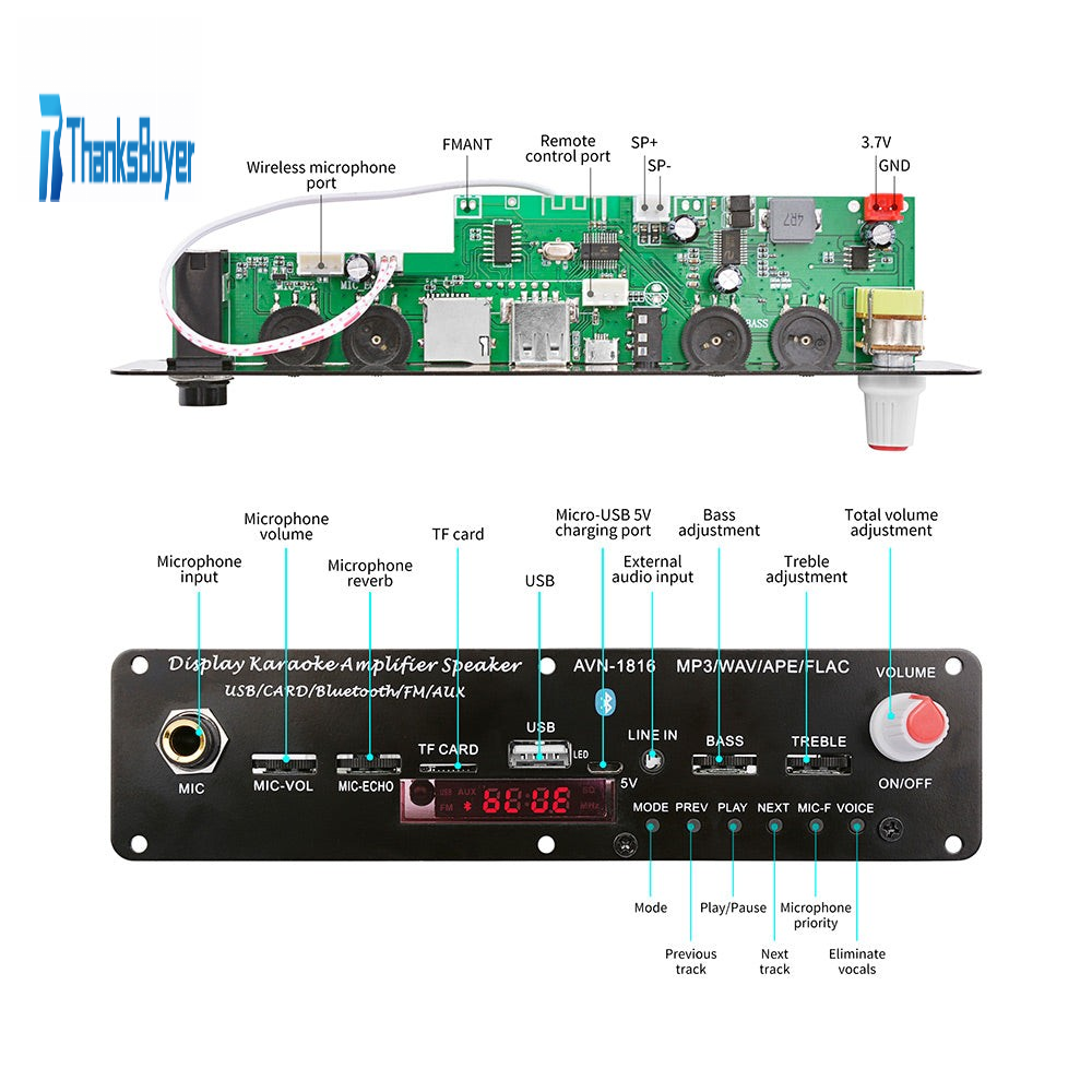 AVN-1816 20W BT5.0 Karaoke Bluetooth Speaker Amplifier DAC 3.7-5V + Cable + Normal Remote Control
