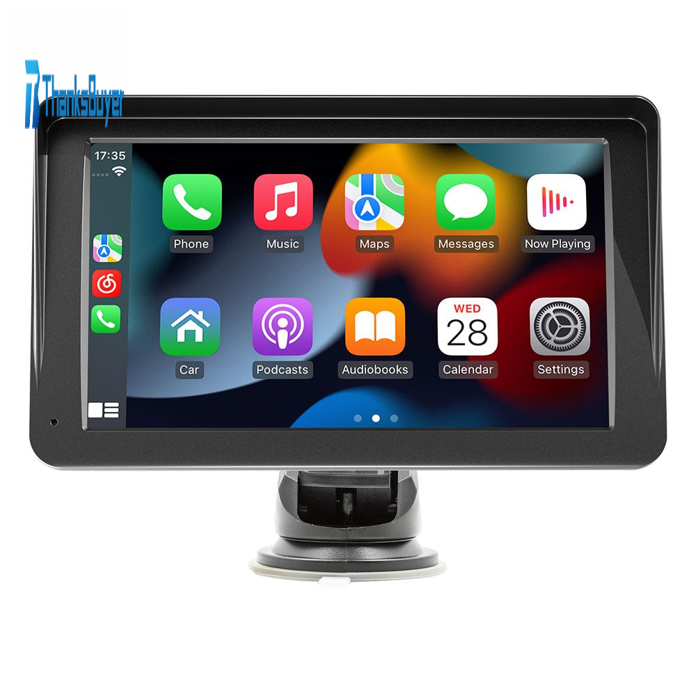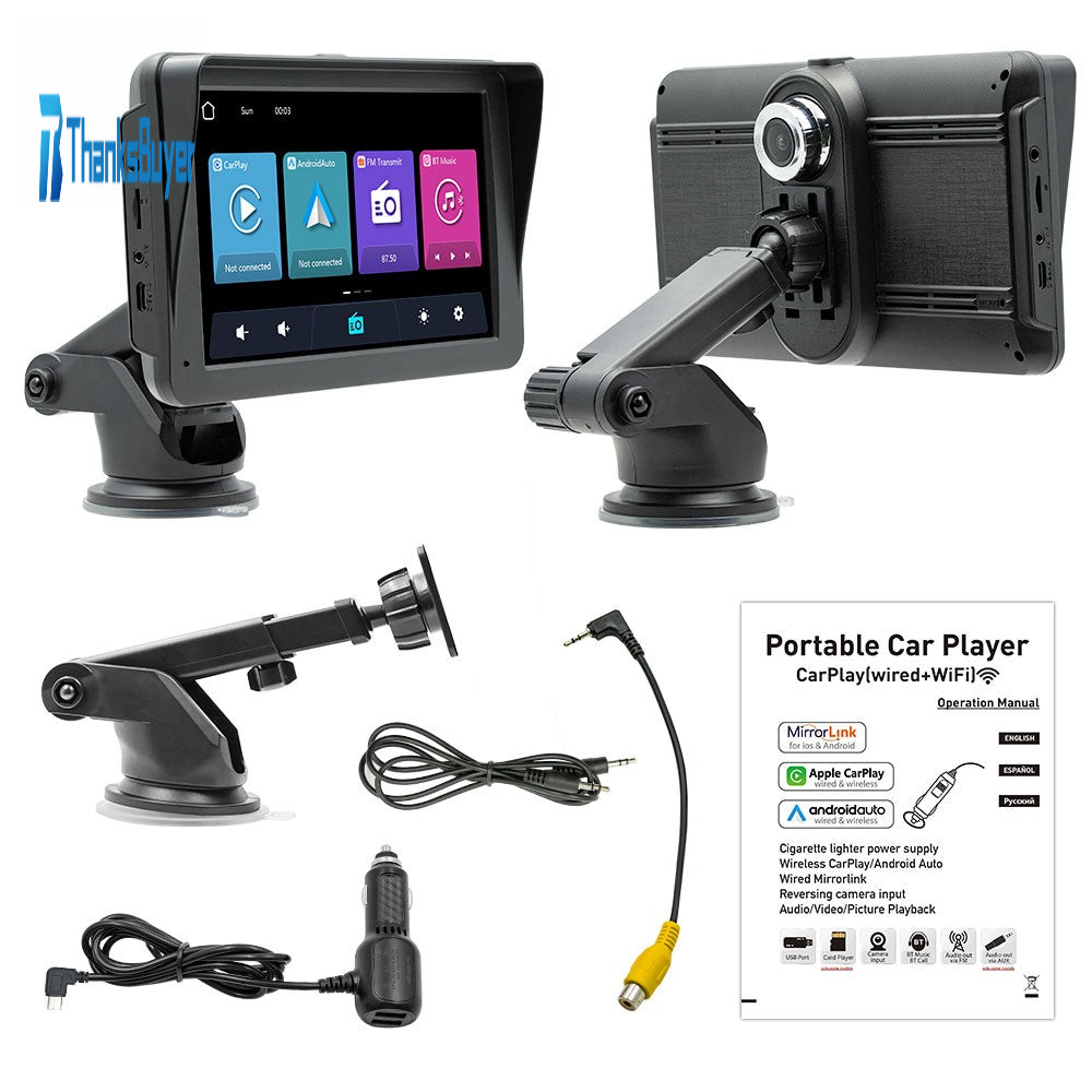 - The car player is deigned with a 7-inch touch screen and a dash camera on its rear side. For Apple CarPlay (wired & wireless), Androidauto (wired & wireless) and MirrorLink for iOS and Android phones.