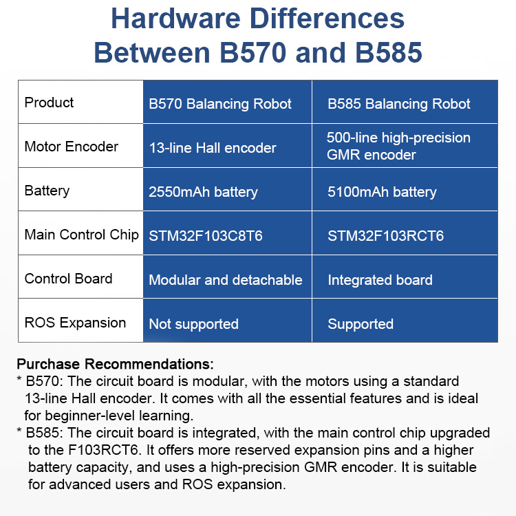 * The B570 and B585 support both ultrasonic obstacle avoidance and following modes, allowing users to switch between them freely.