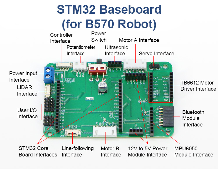* TB6612 Motor Driver Module: Using the original TB6612 chip, it easily drives the two motors of the balancing car. A complete and detailed development manual is provided.