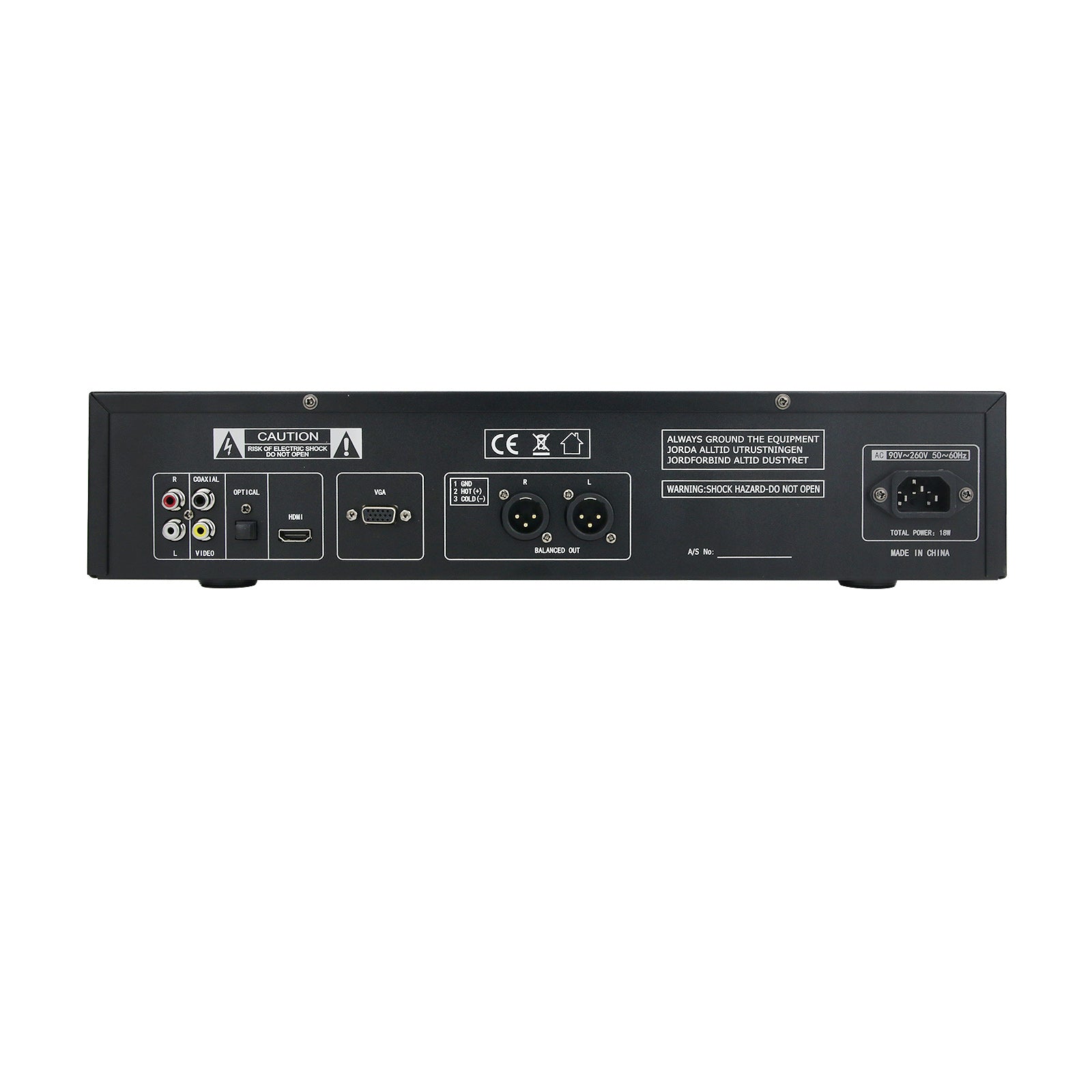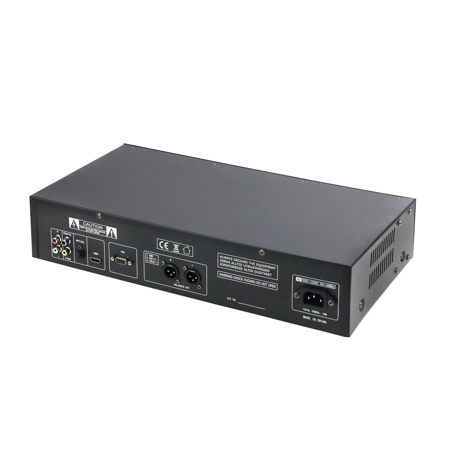 * Audio source output: RCA, JACK, XLR, COAXIAL, OPTICAL