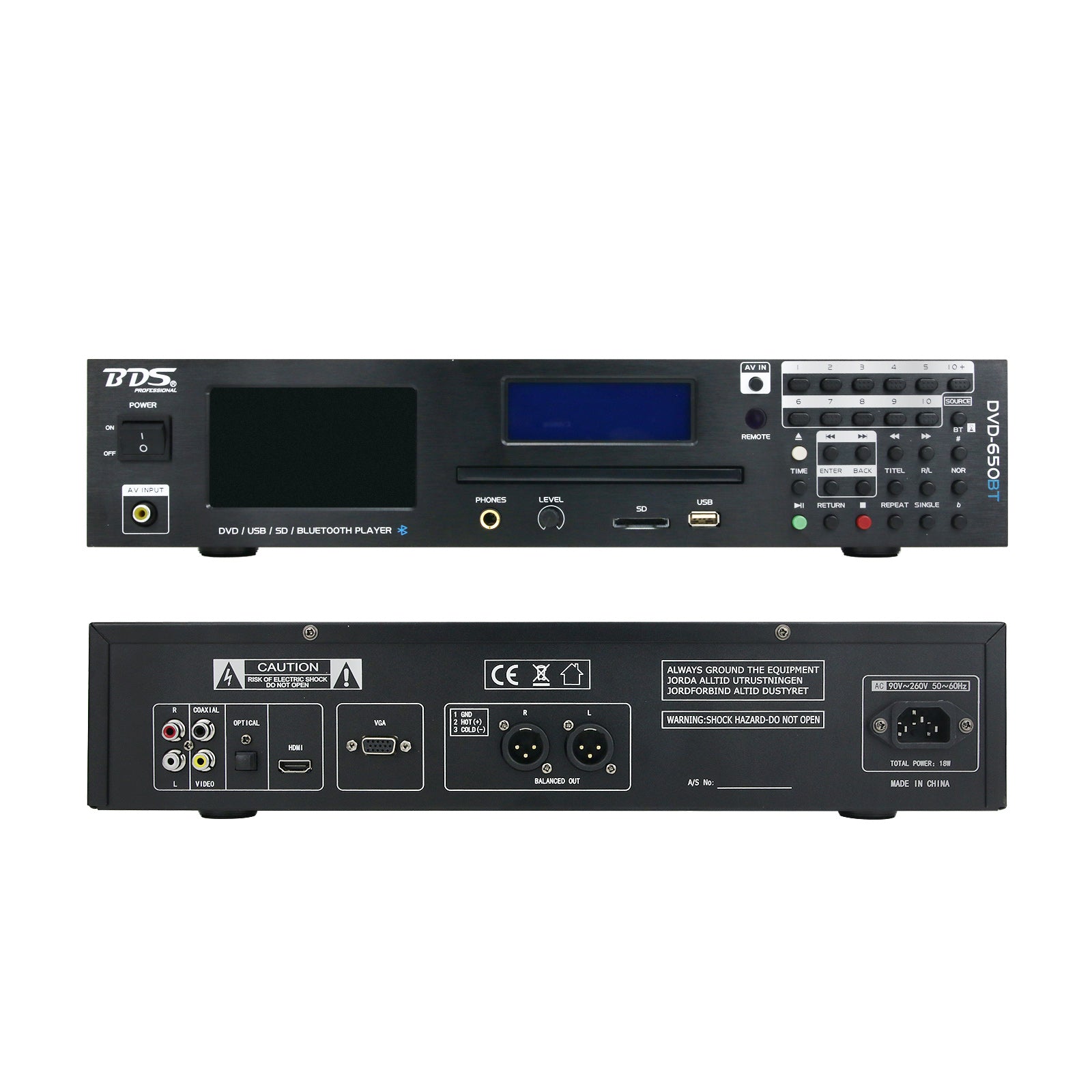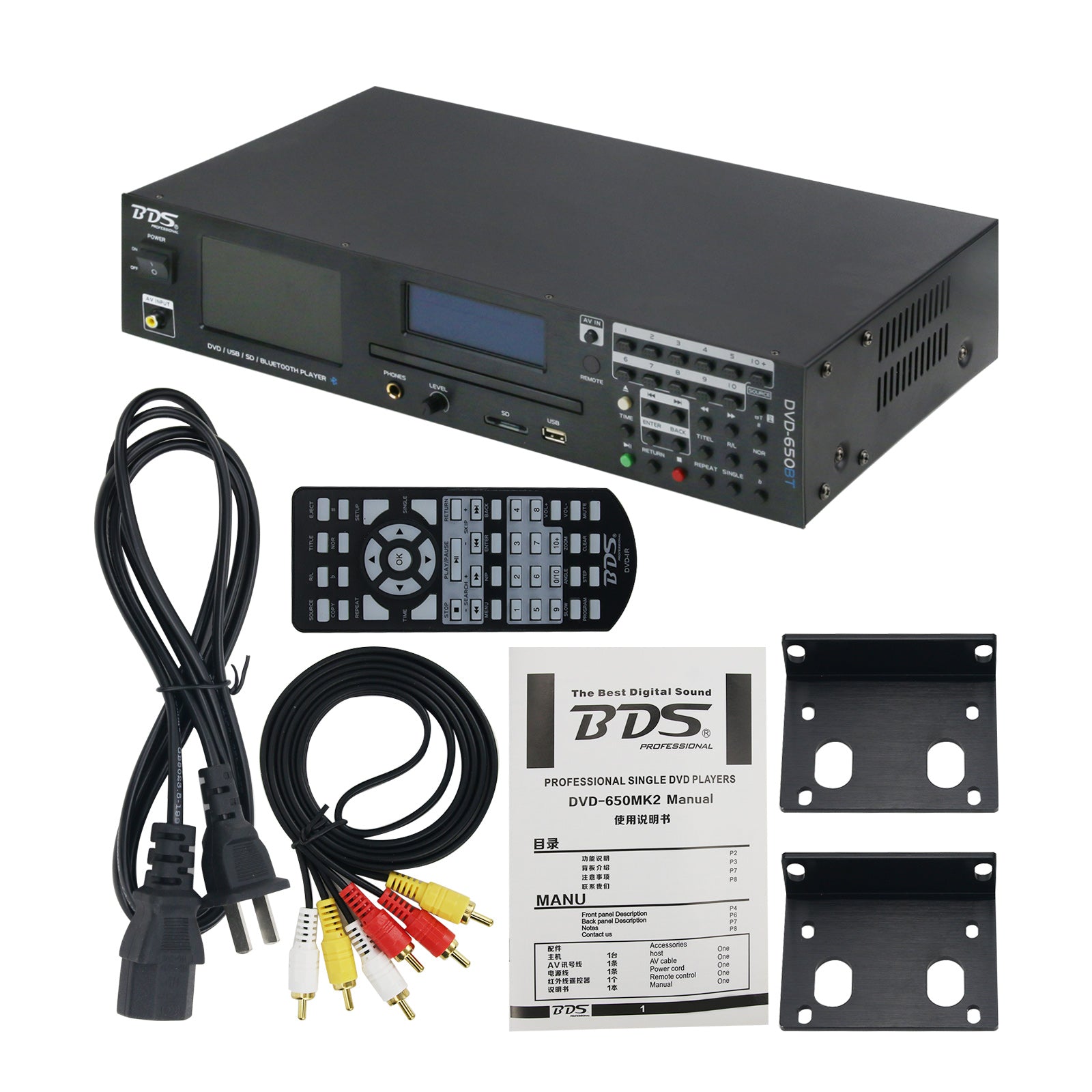 BDS DVD-650BT DVD Player USB SD Bluetooth Player 2U Rack-Mount With 4.3" TFT Display FM Radio