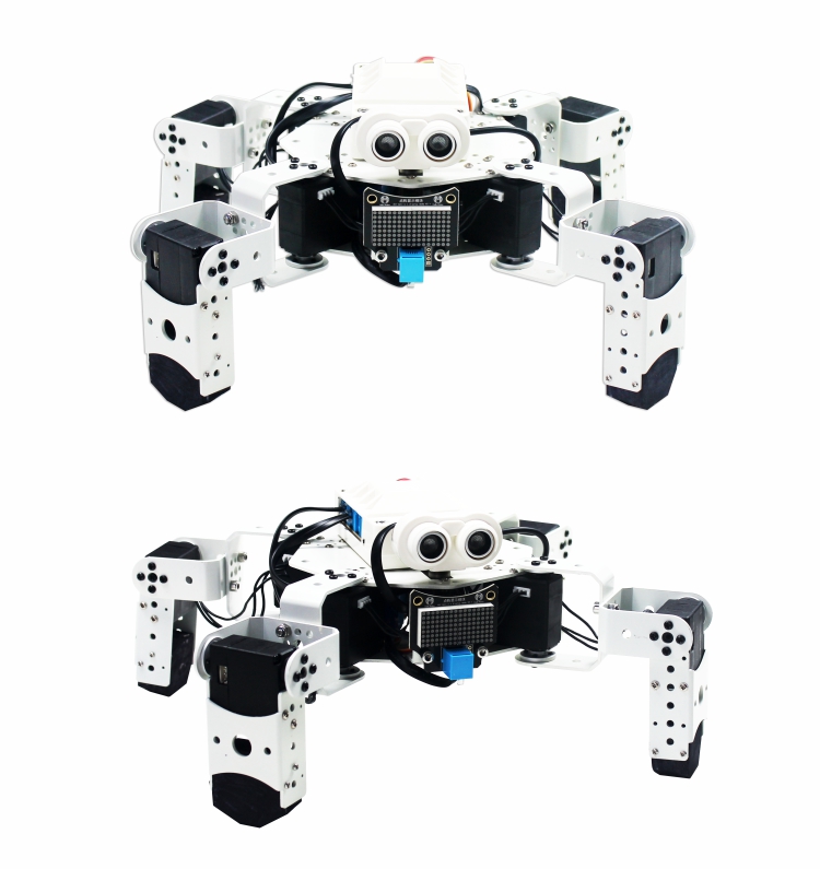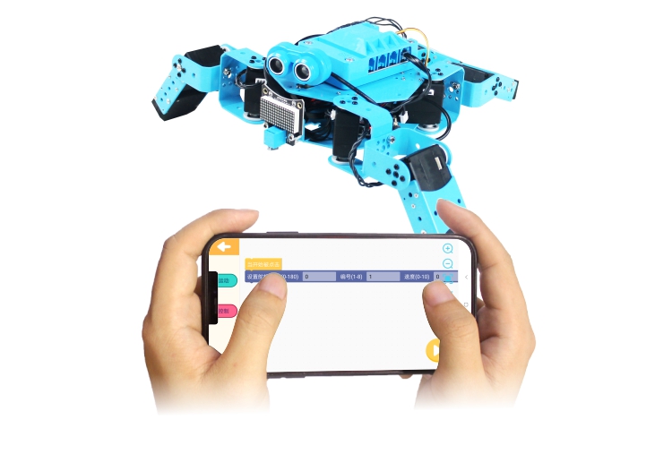 - Mobile APP wireless programming control for Android system. Provide a wireless Bluetooth remote control mobile phone APP, which can make the quadruped robot: crawl in different directions, turn forwards, turn backwards, push-ups, shaking hands, and stand upright. You can also edit custom actions