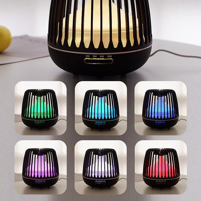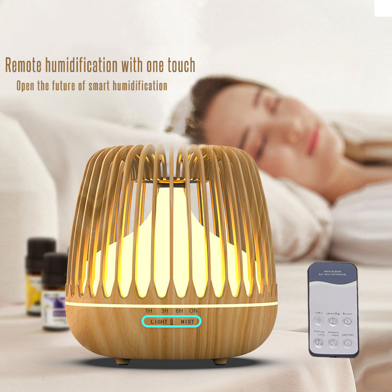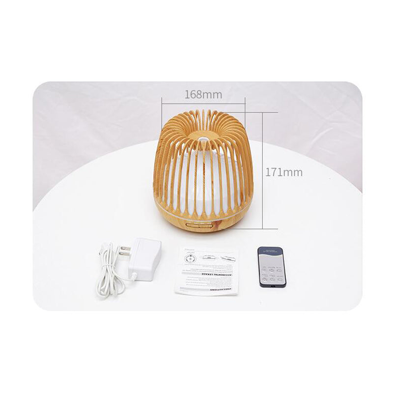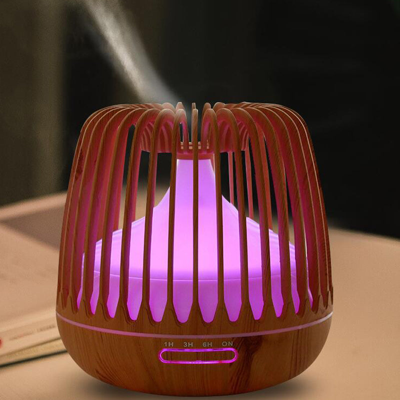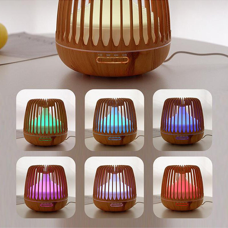 Birdcage Wood Grain Humidifier Aroma Essential Oil Diffuser Ultrasonic Air Purifier Sprayer 500ml w/ Colorful Light