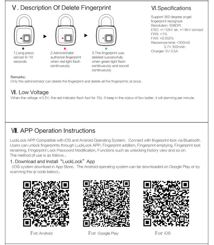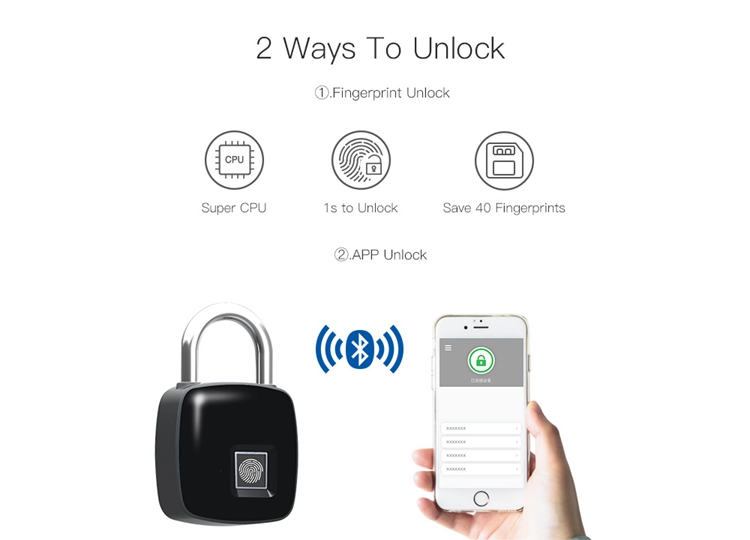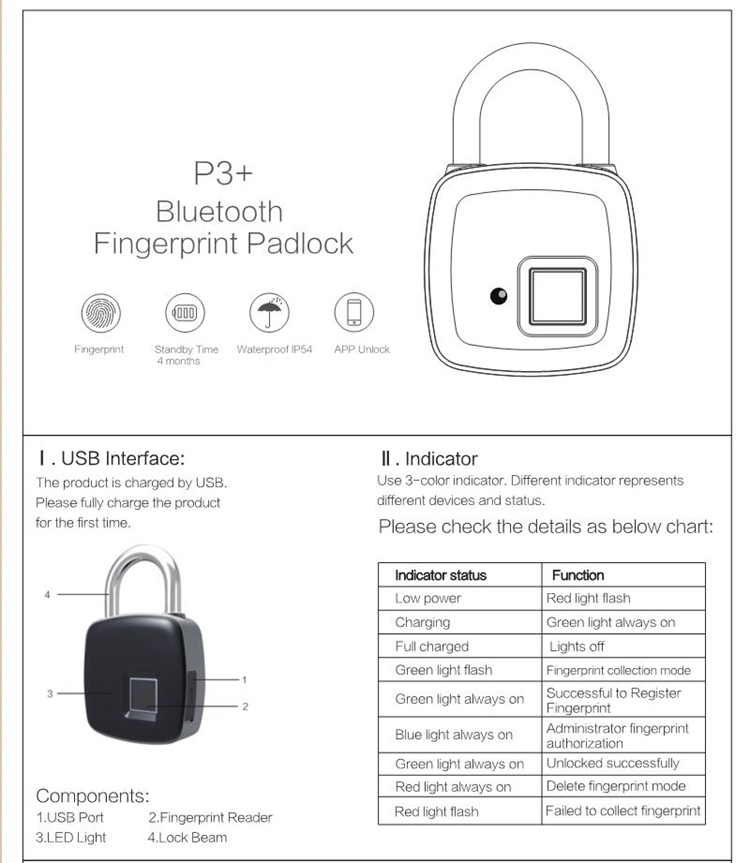 Bluetooth Fingerprint Padlock Biometric Fingerprint & APP Unlock for Android Google Play iOS P3+