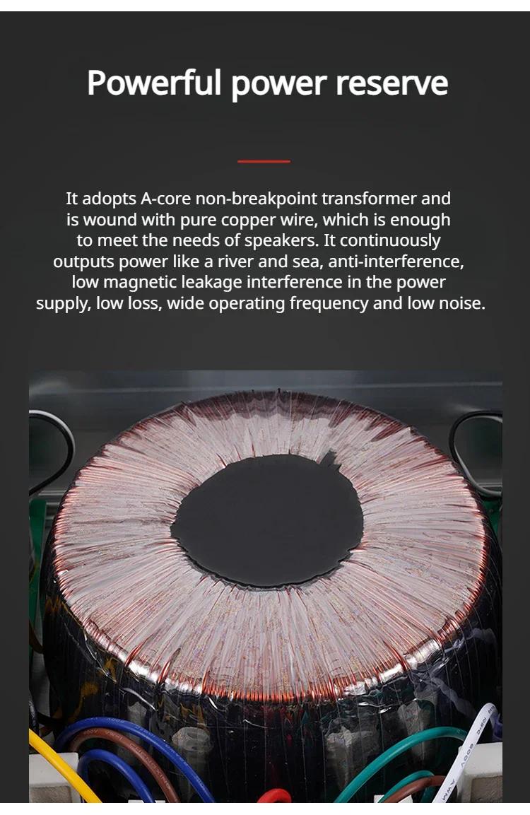 - Adopting a giant A-core breakpoint free transformer and pure copper wire winding, it is sufficient to meet the needs of high-volume speakers and continuously output power like a rushing river and sea.