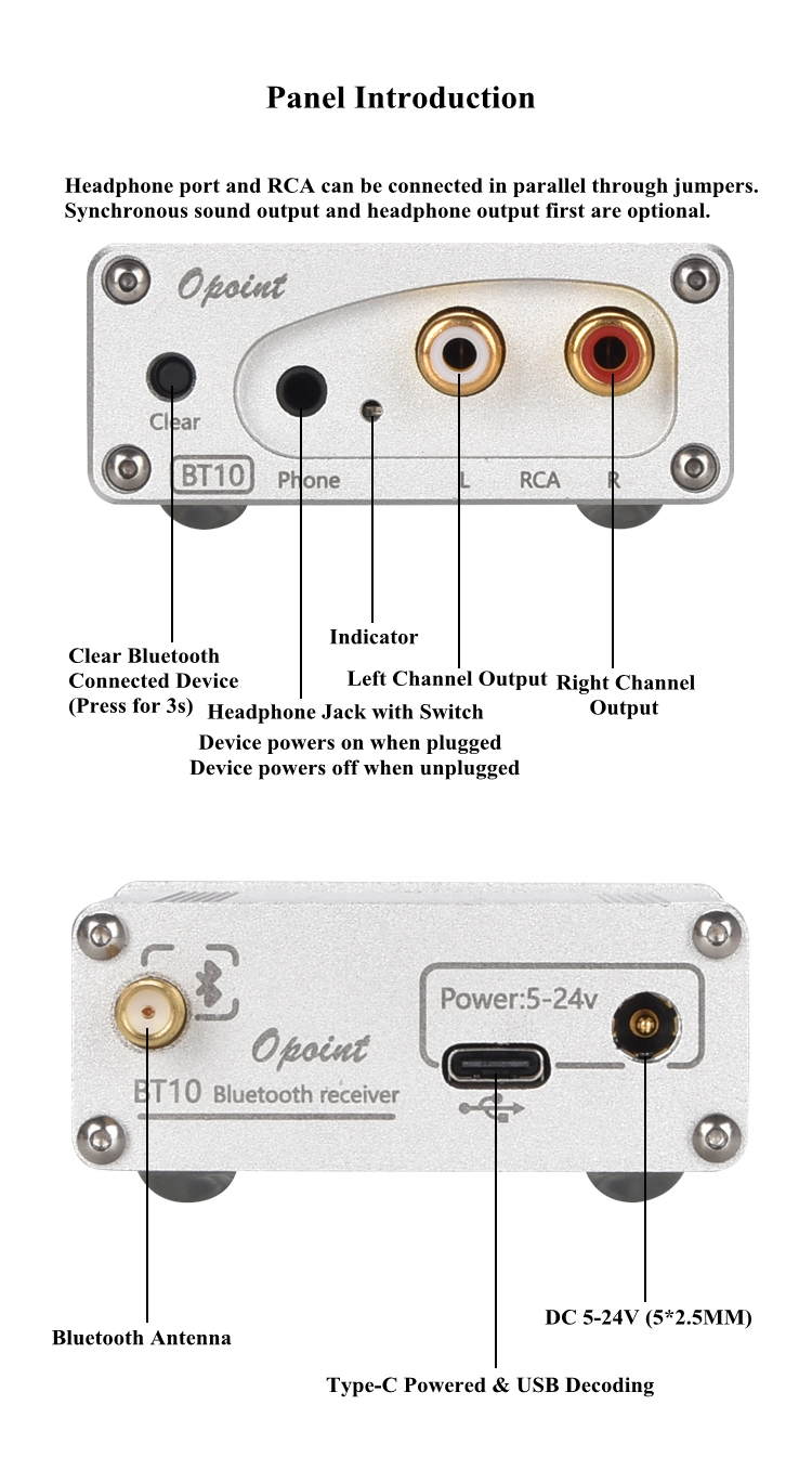 - Bluetooth support: For CSR8675-SBC/AAC/APTX/APTX-LL/APTX-HD/LDAC