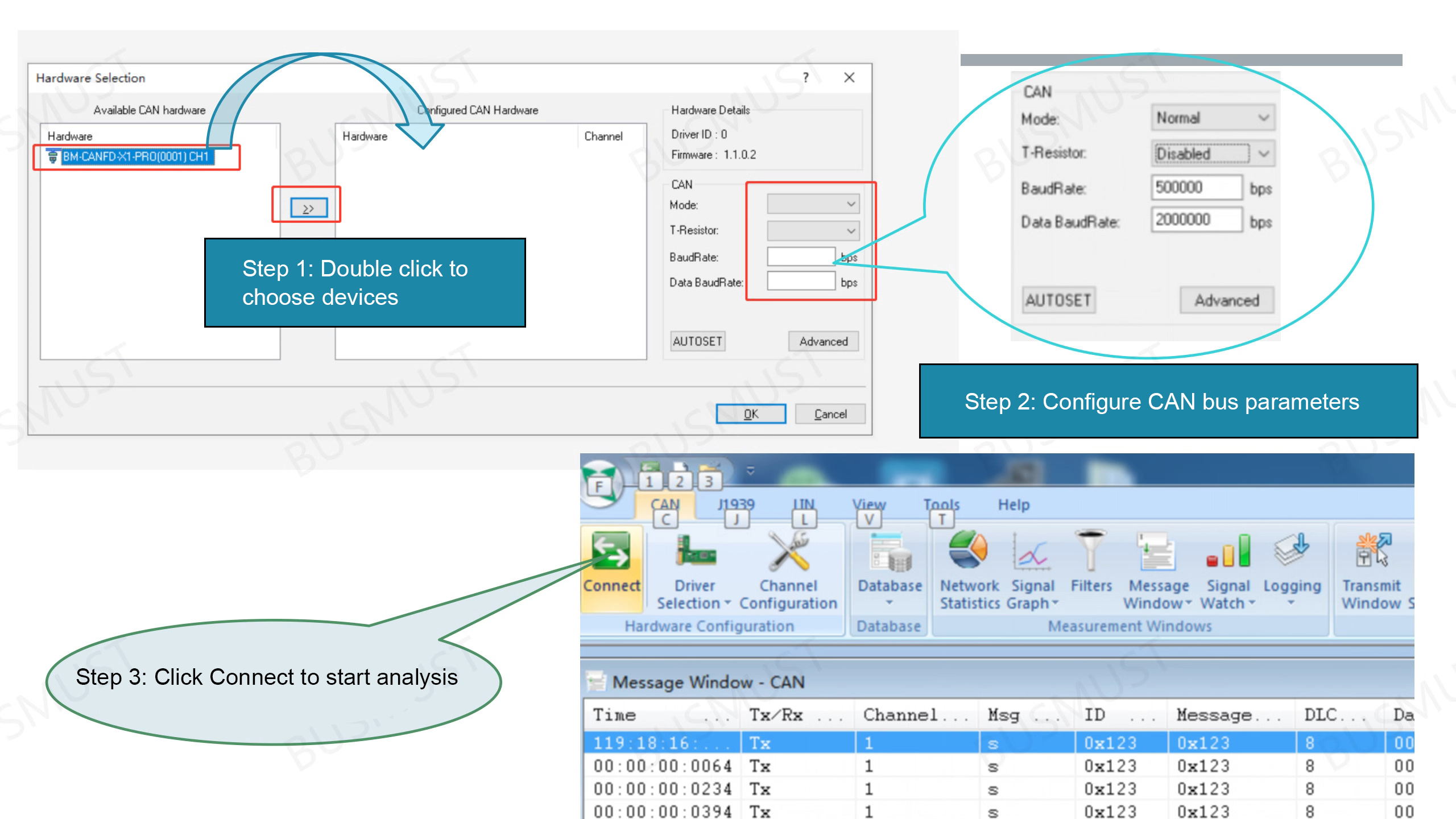 - Each analyzer has passed the CAN-FD arbitration segment 500kbps + data segment 2000kbps classic vehicle scenario test before shipment