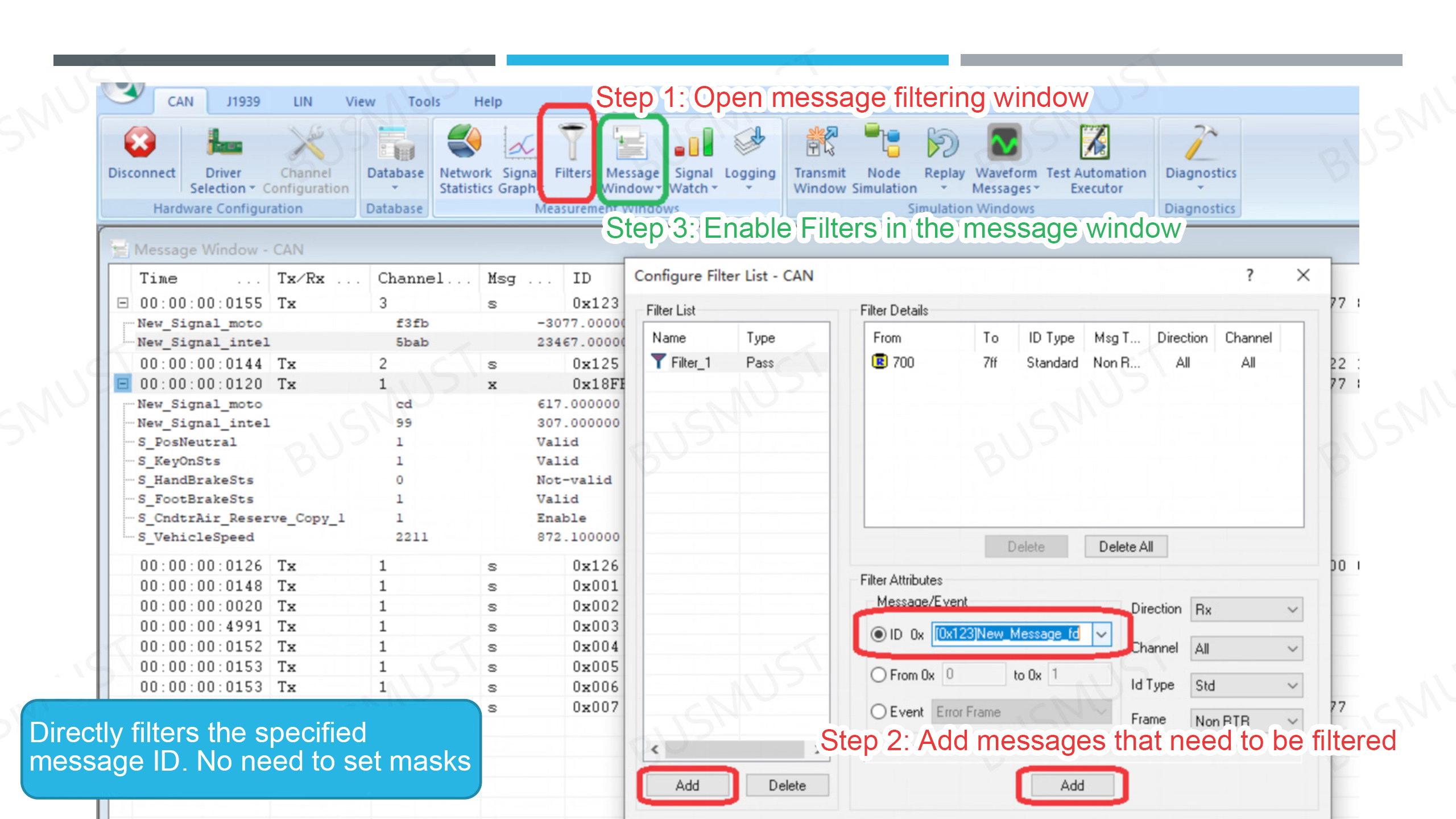 - Two hardware-level real-time receiving filters exclusively support message load content filtering