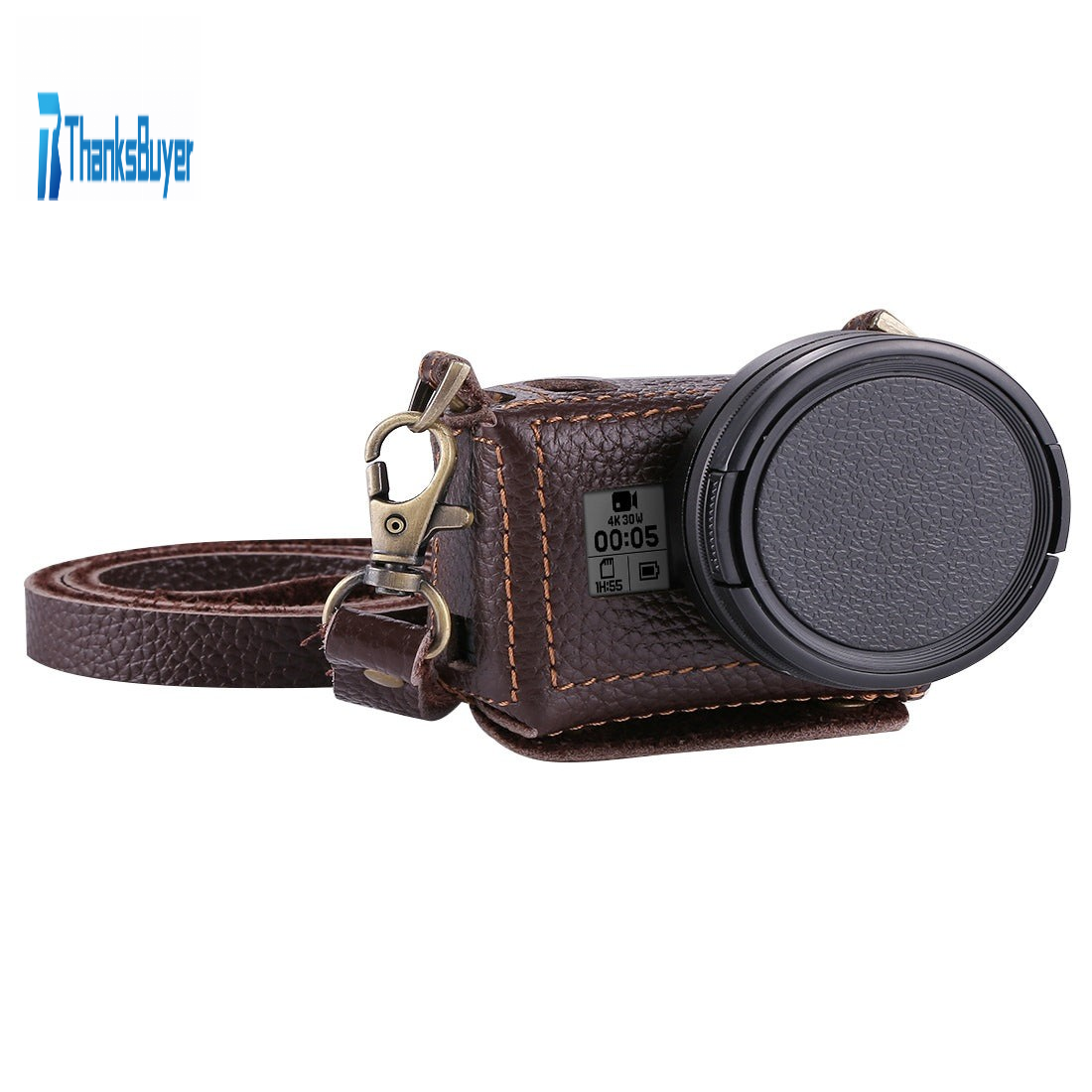 Camera Protective Case Housing Case Genuine Leather w/ 52mm UV Lens For GoPro HERO7 Black/6/5 PU305