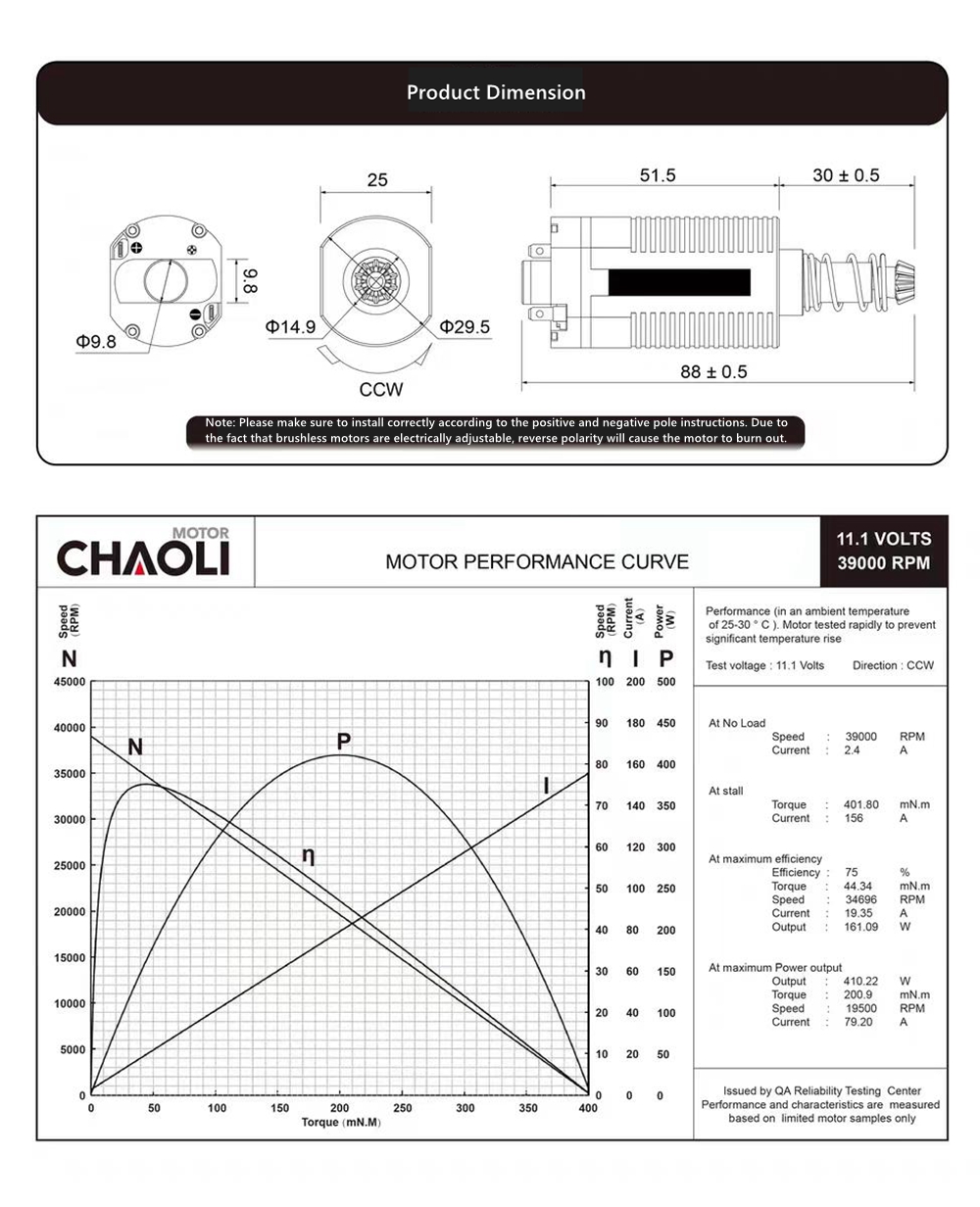 - Motor size: 88 x 29.5 x 25mm