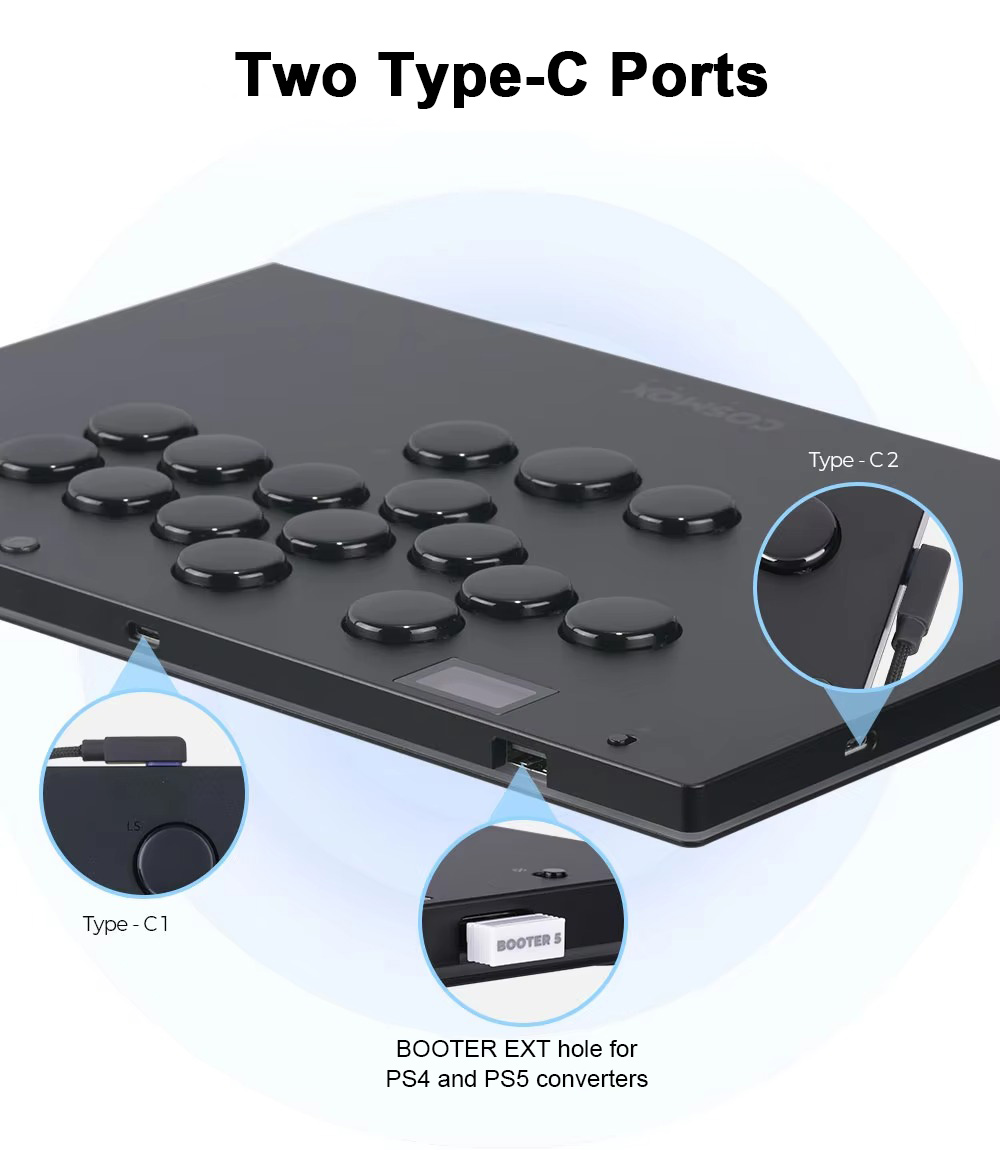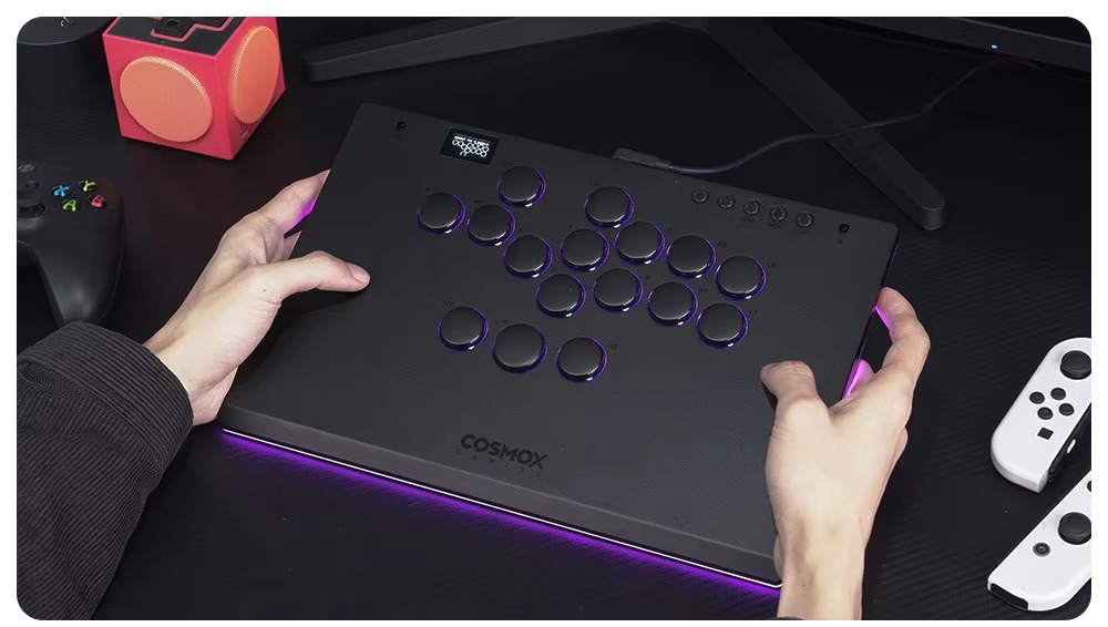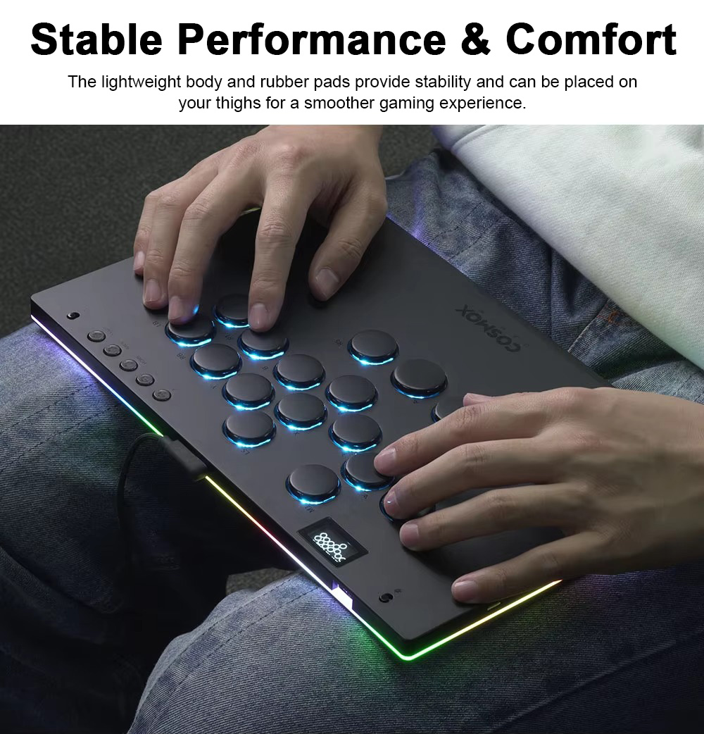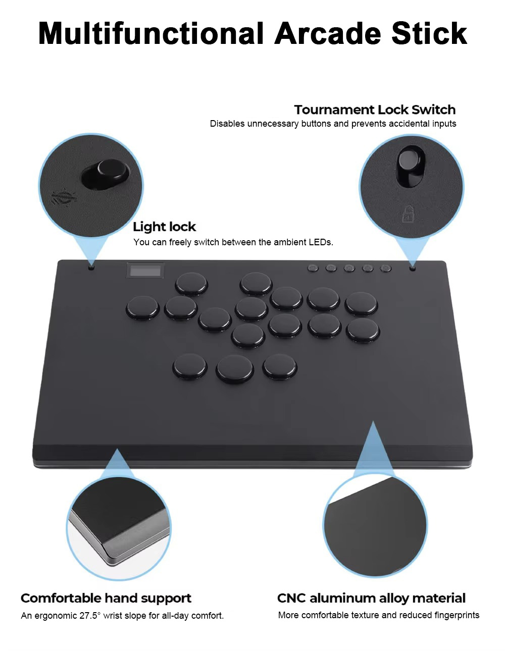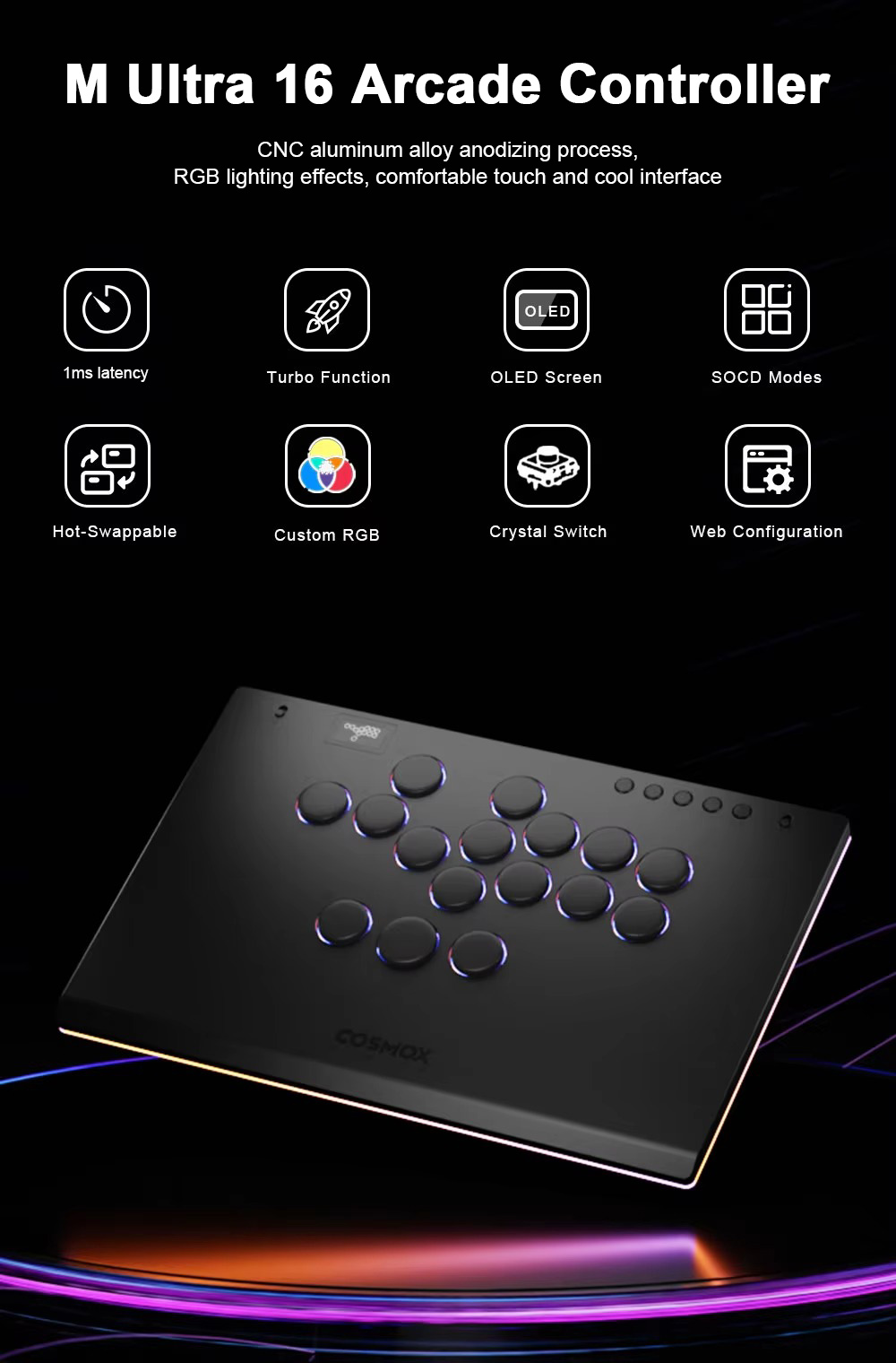 COSMOX M Ultra 16 Aluminum Alloy Arcade Controller 16-Button Arcade Stick w/ Tournament Lock Switch