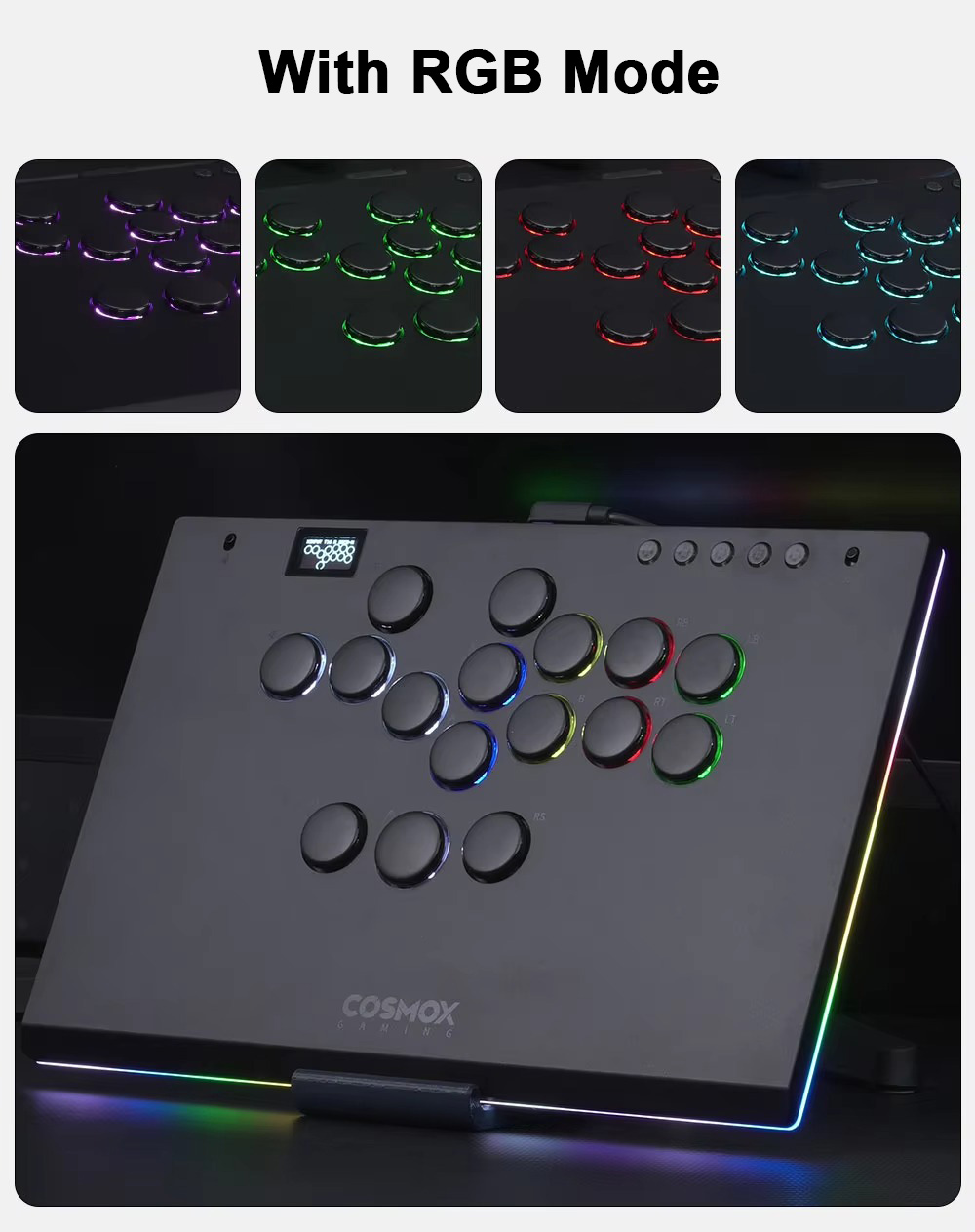 * Ambient LEDs: Dynamic lighting effects that flow with the action in fighting games